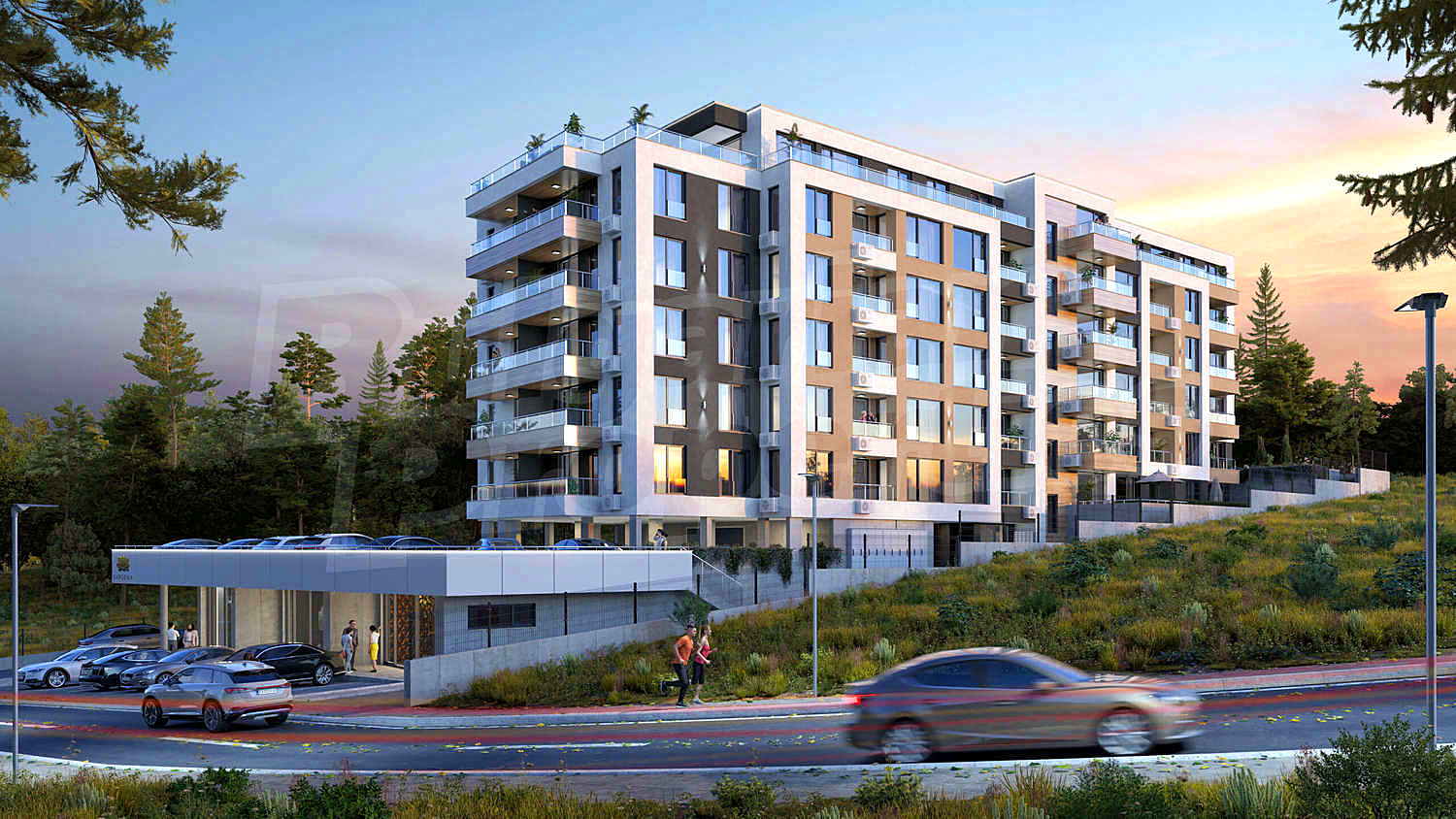 Новострояща се сграда в затворен комплекс в кв. Меден рудник гр. Бургас , кв. "Меден рудник - зона Д" Последна фаза луксозно строителство сред зеленина, с живописна гледка към Бургаския залив Новострояща се сграда в затворен комплекс в кв. Меден рудник - Последна фаза луксозно строителство сред зеленина, с живописна гледка към Бургаския залив