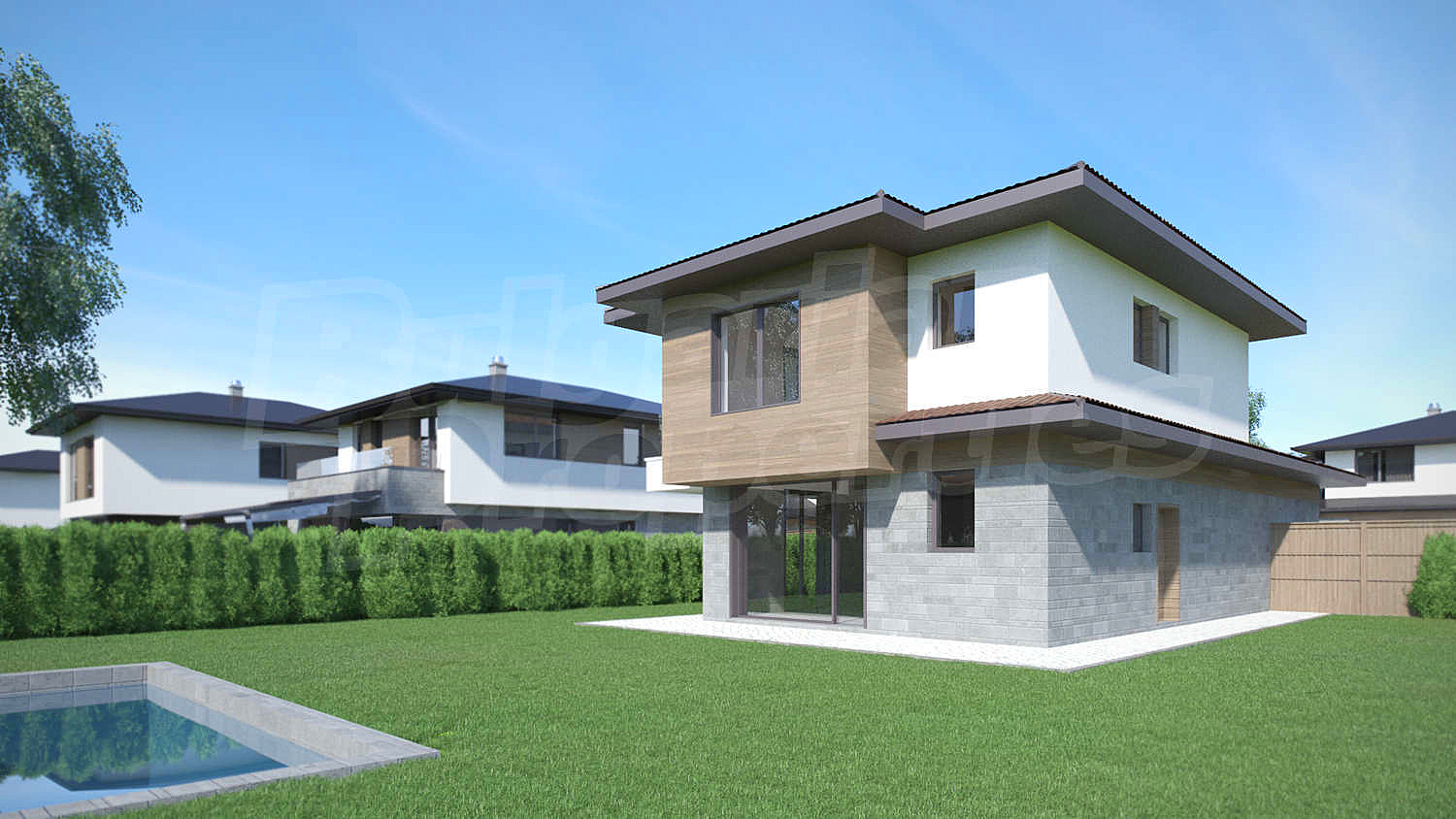 Комплексът предлага самостоятелни двуетажни къщи с модерна архитектура и собствени дворни пространства. Всеки имот разполага с просторен двоен гараж и три външни паркоместа, а бъдещите собственици могат да избират между три основни типа къщи – с площ от 181 до 223 кв.м и възможност за промени по дизайн и разпределение според личните предпочитания: