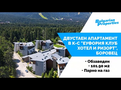 Разгледайте нашето ново предложение за частично обзаведен двустаен апартамент сред боровите гори на Рила планина в прекрасния ски курорт Боровец, разположен само на около 72 км от столицата (един час път с кола). Апартаментът е готов за нанасяне и е част от модерния затворен комплекс „Еуфория Клуб Хотел и Ризорт“, построен сред тишина, спокойствие и зеленина, с лесен достъп до модерни ски съоръжения, в район, подходящ не само за зимни спортове, но и за летен туризъм, привличащ български и чуждестранни туристи през цялата година. Годишна такса поддръжка - 15.72 евро/кв.м. без ДДС.