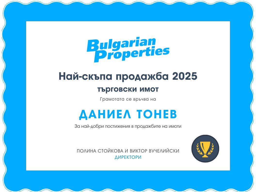 През 2021 г. Даниел успява да продаде едни от най-луксозните и атрактивни имоти в компанията, като с това си завоюва второ място в категорията "Най-скъпа продажба" в Годишните награди на BULGARIAN PROPERTIRES.