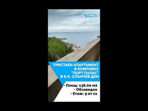 Представяме на вашето внимание напълно обзаведен и оборудван тристаен апартамент в уникалния яхтен комплекс от затворен тип Порт Палас в к.к. Слънчев ден, на първа линия море, близо до Златни пясъци и Кранево, на 1.6 км. от плаж при Св. Константин и Елена, на 1.7 от плаж Кабакум, на 5 км от Евксиноград, на 18 км от летище Варна. Класическата сграда е изпълнена в старинен дворцов стил - облицована с камък ниска част, фасада, характеризираща се със строг ритъм от редуващи се балкони с балюстради и еркерни части, чийто завършек е висок мансарден покрив.