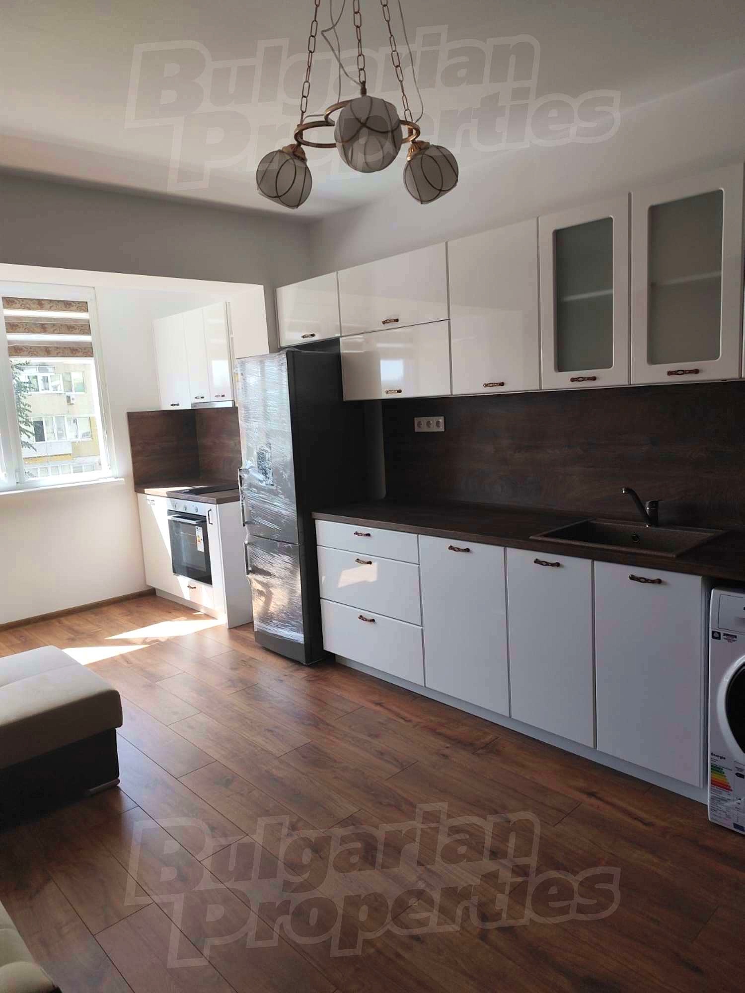 • просторен дневен тракт с кухненски бокс, оборудван с нови електроуреди – фурна, хладилник и всичко необходимо за ежедневието;