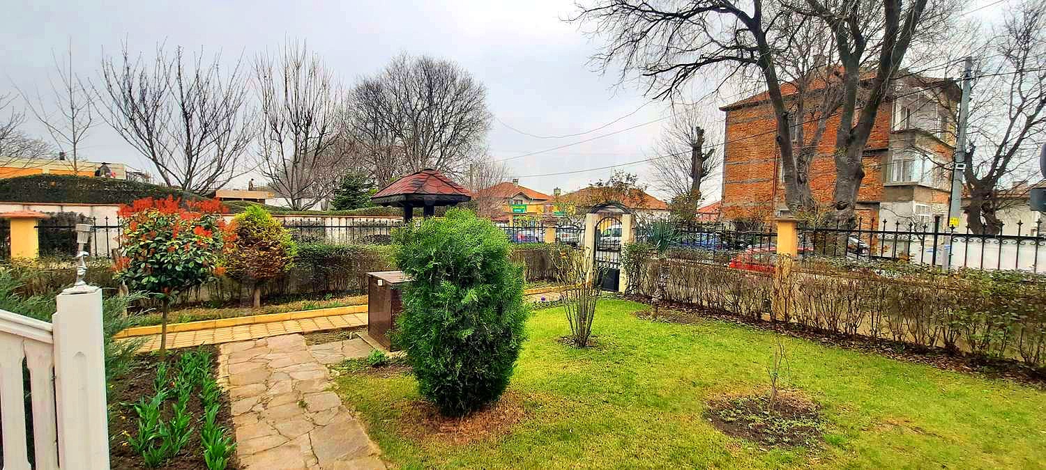 В двора има 2 гаража с площ от 40 кв.м., барбекю с навес, външна чешма, кладенец, цветна градина.