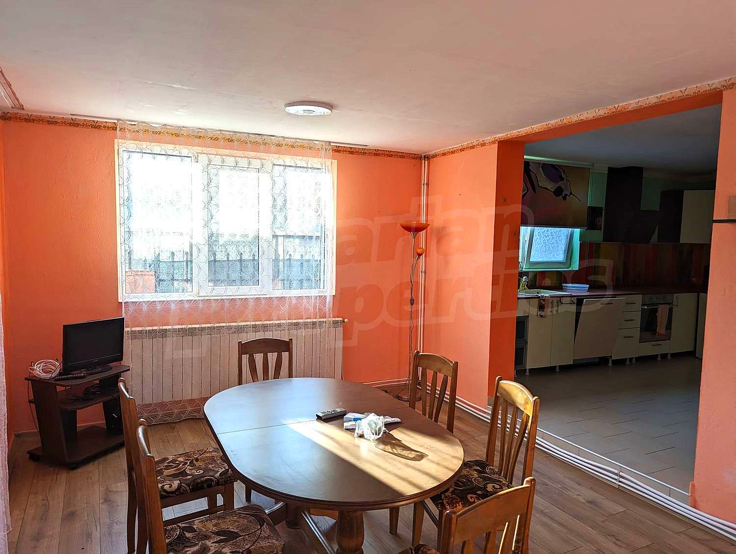 • Първи етаж: коридор, дневна с кухня на две нива, санитарен възел с монтирана котел за отопление на парно в цялата къща, две спални.