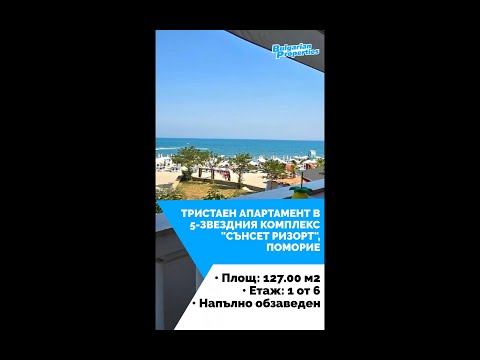 С удоволствие отправяме днешното предложение за покупка на изцяло обзаведен тристаен апартамент с уникална гледка към морето и вътрешния двор с басейни на 5-звездния комплекс Сънсет Ризорт, Поморие, разположен на първа линия, на самия плаж, в непосредствена близост до аквапарк Sunset Resort. Комплексът предлага външен воден парк с няколко открити басейна, вътрешен басейн, SPA център, ресторанти, фитнес и множество модерни удобства.
