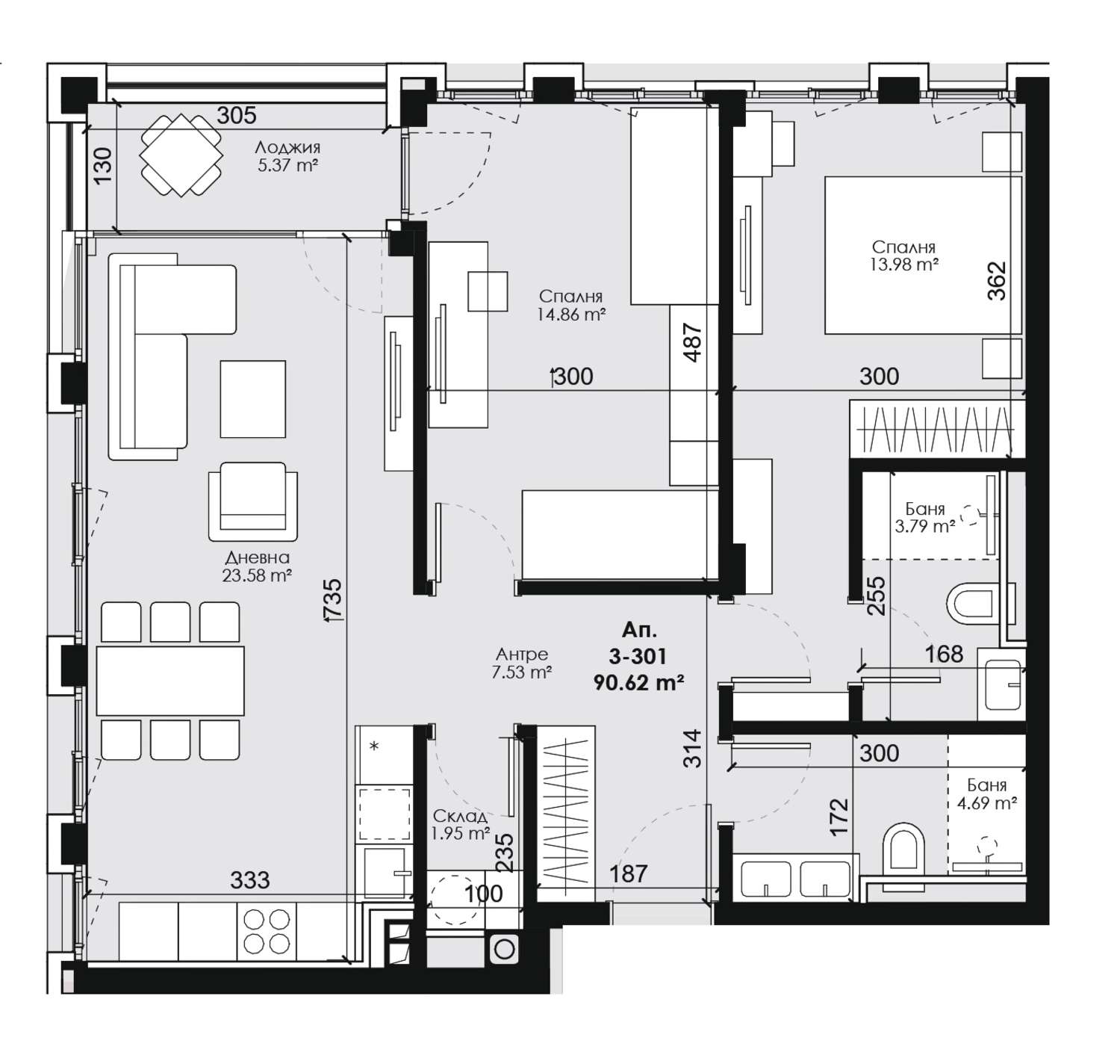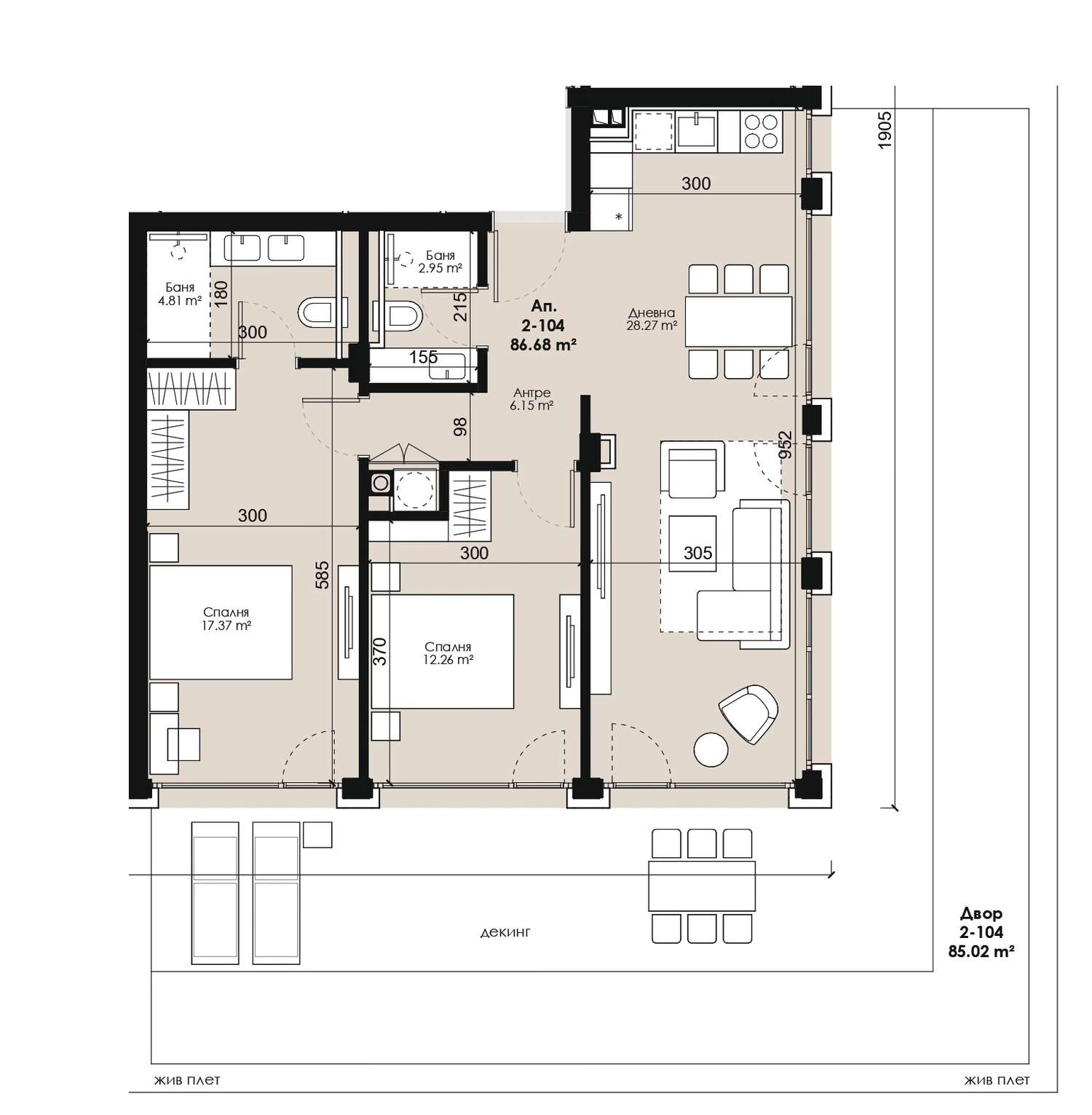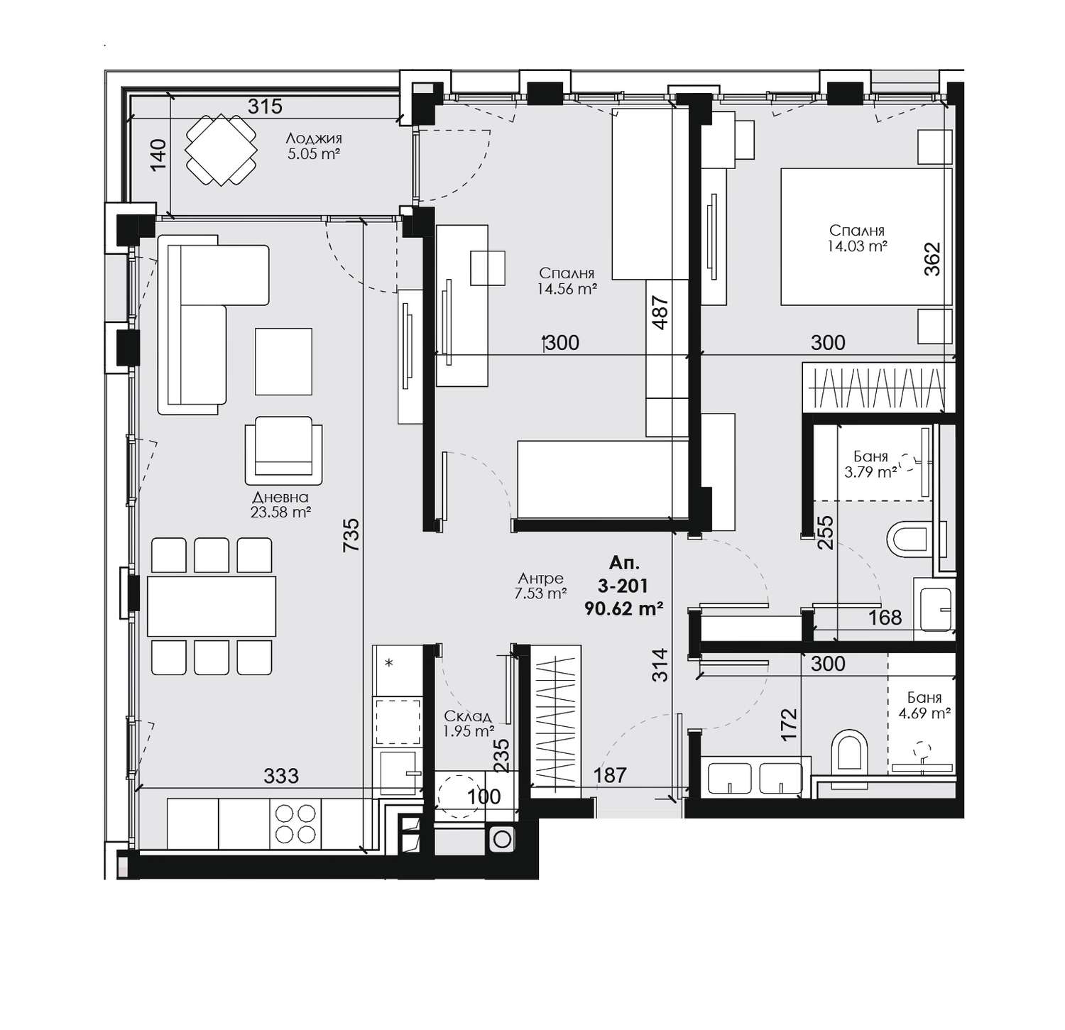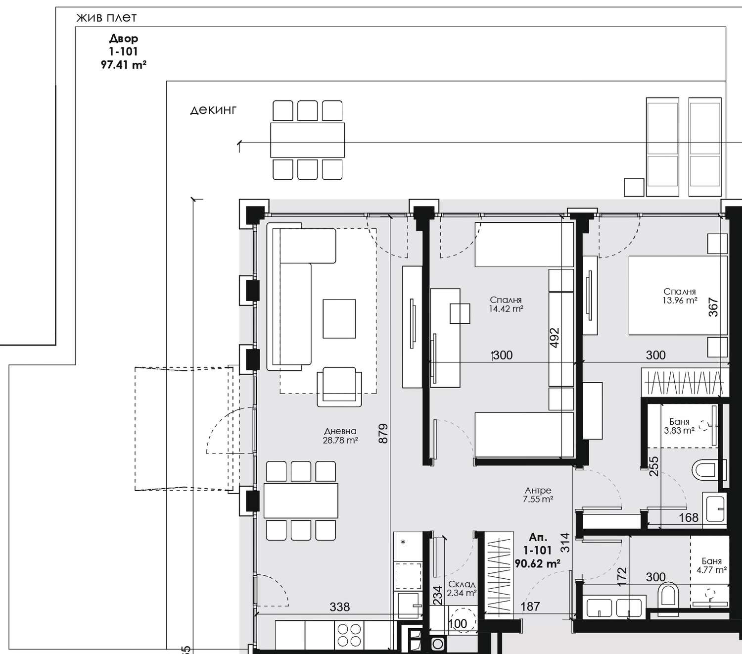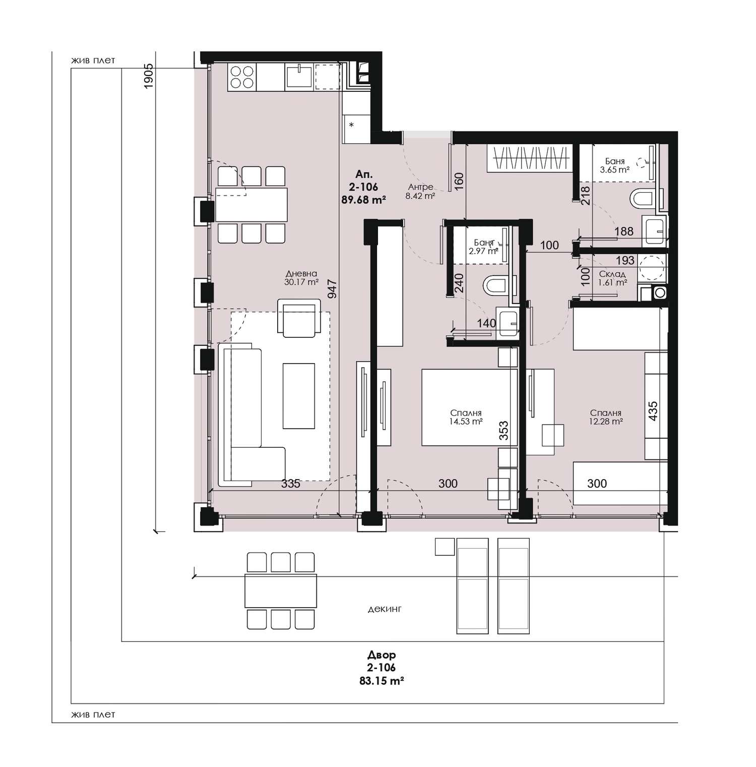 (2 218 €/м2) (4 338,03 лв./м2)Площ: 90.42 м2 Етаж: 1