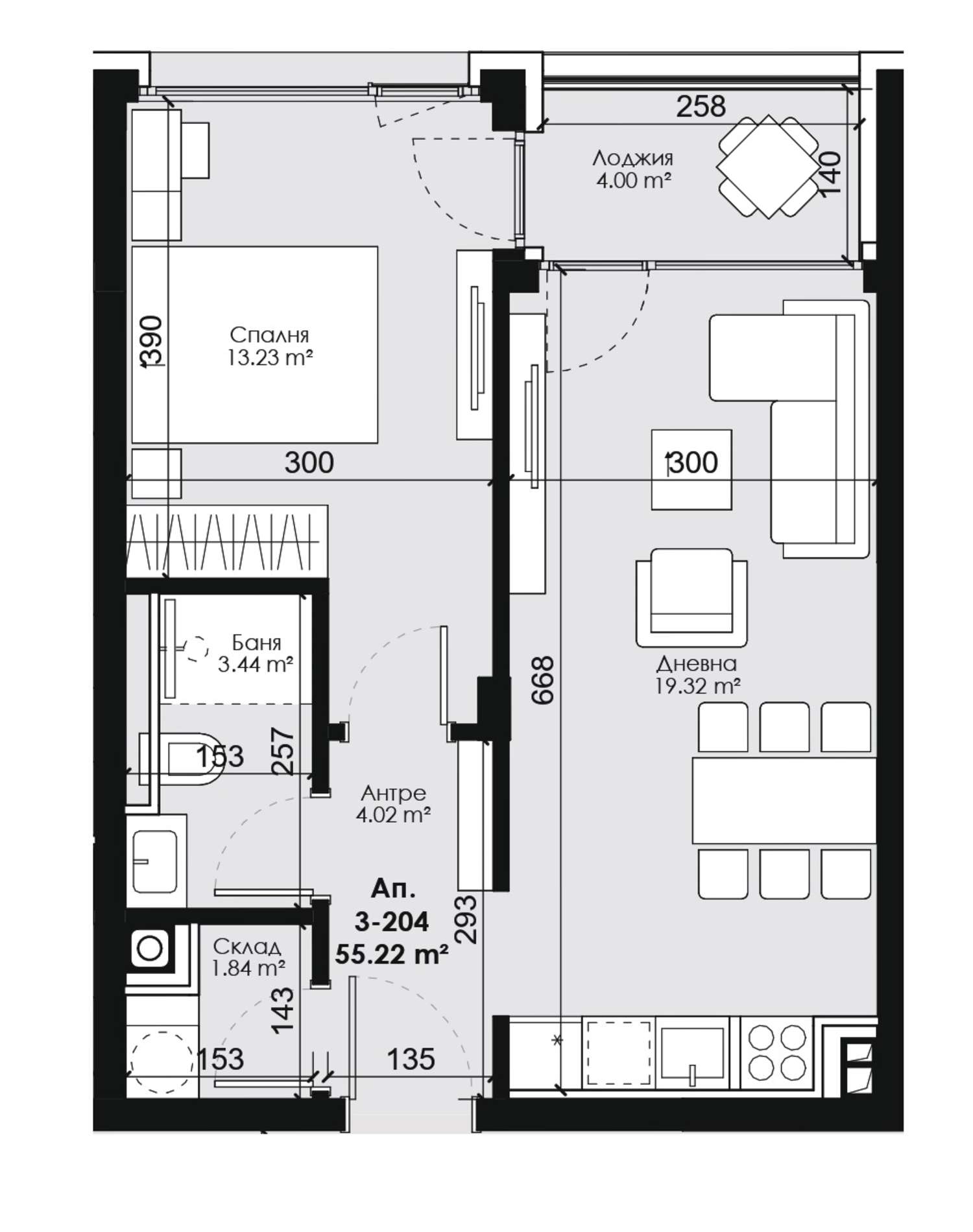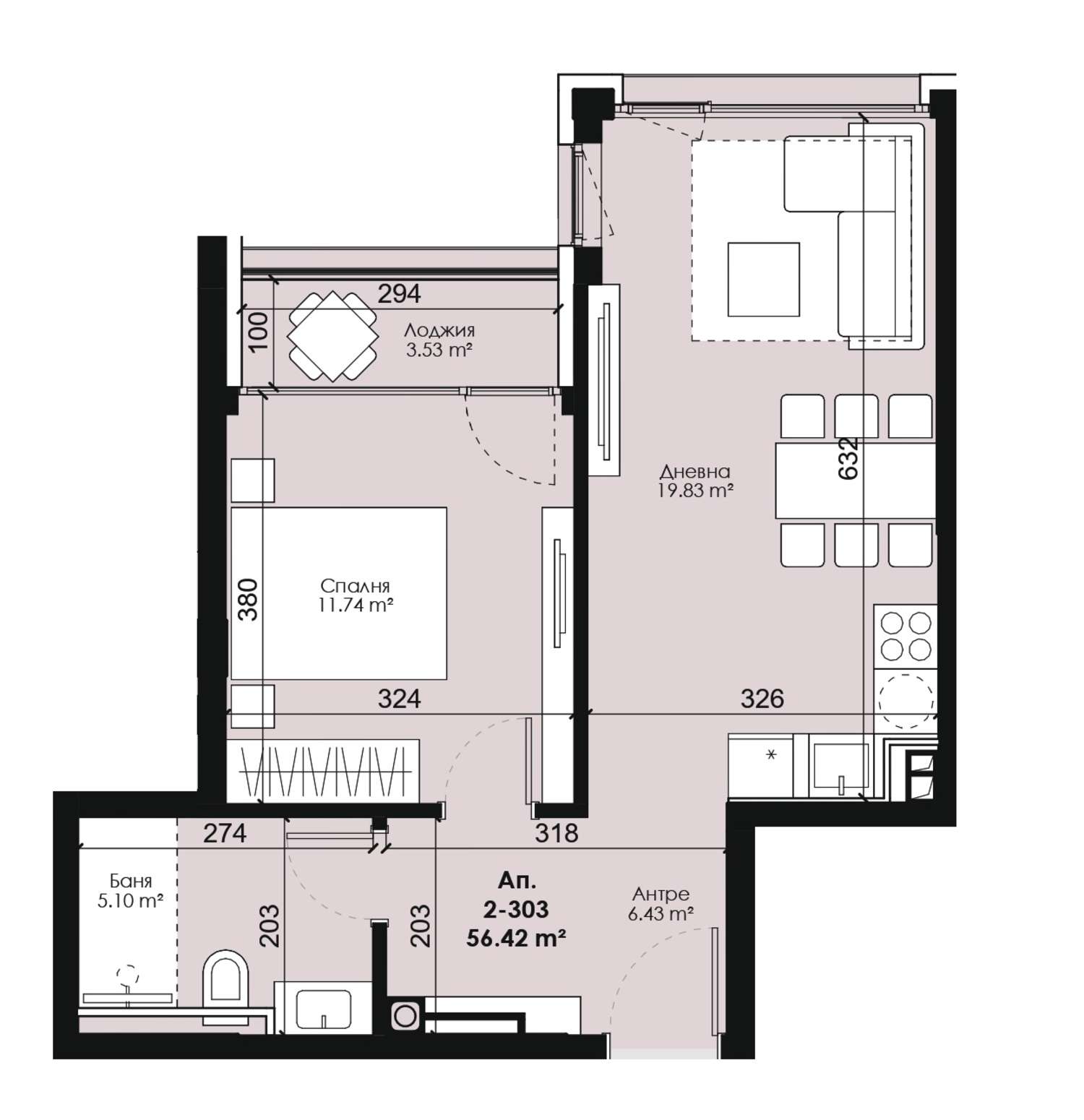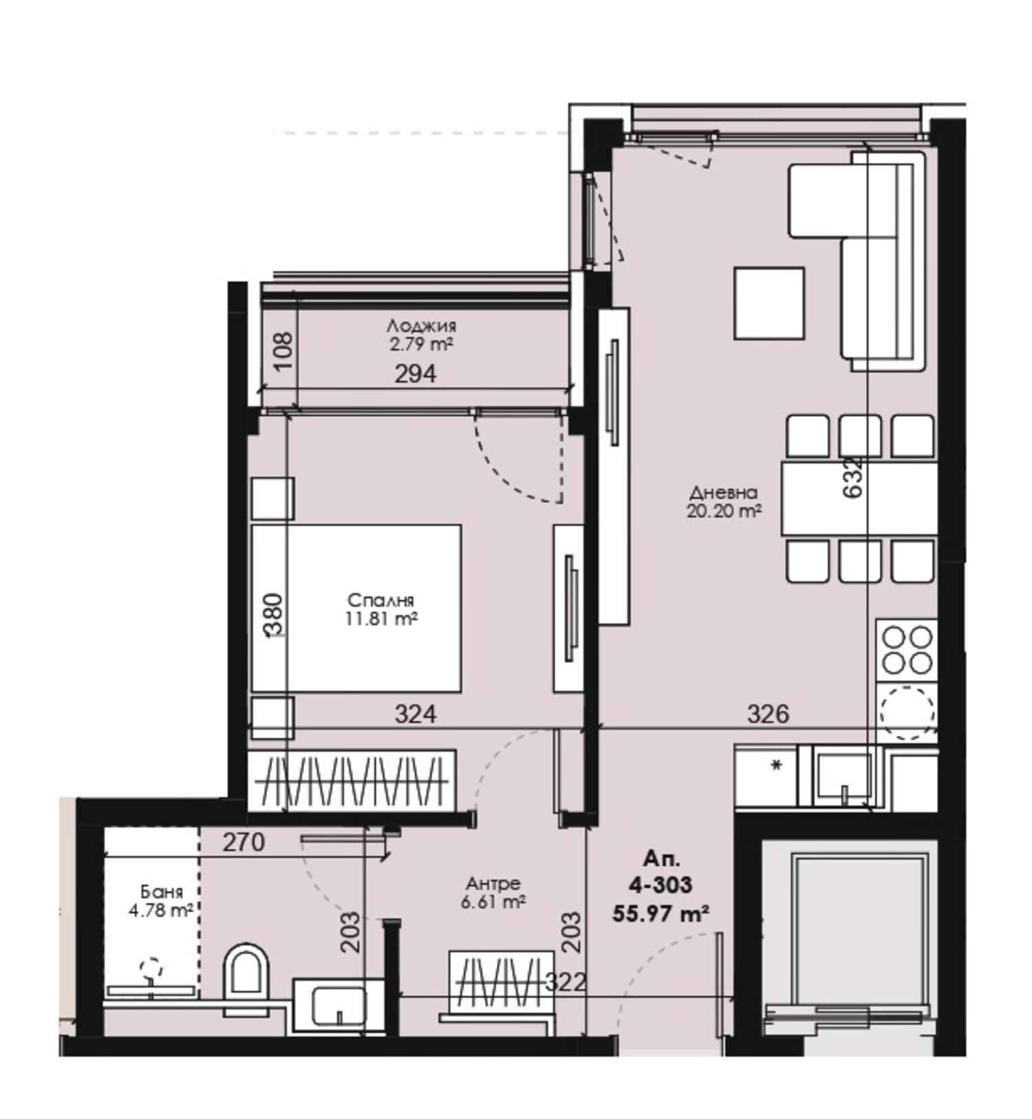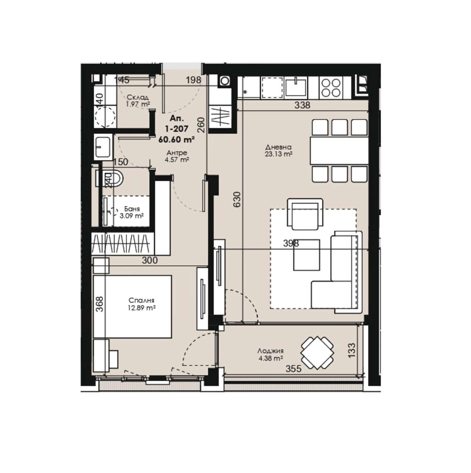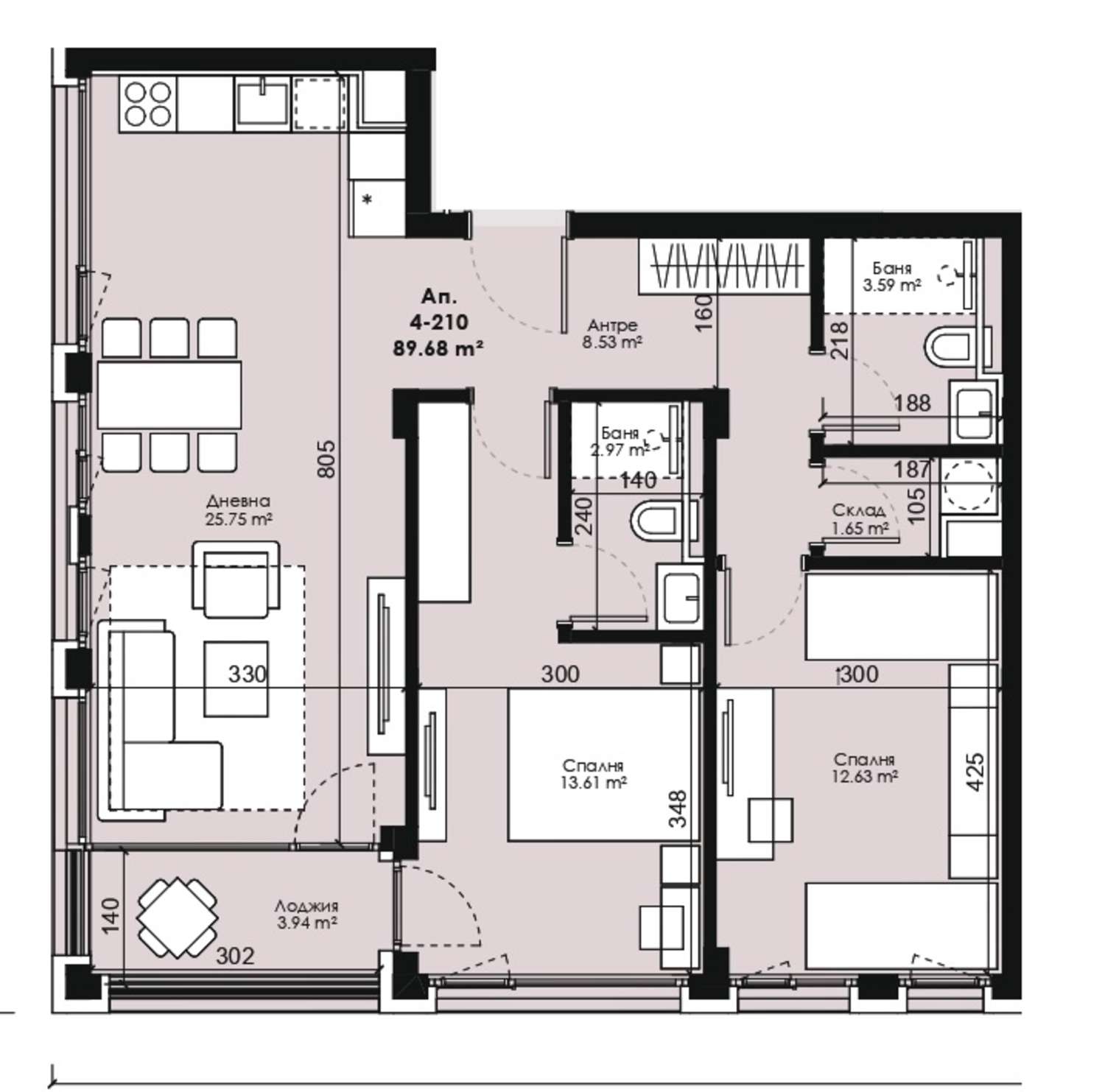 (2 218 €/м2) (4 338,03 лв./м2)Площ: 90.42 м2 Етаж: 1