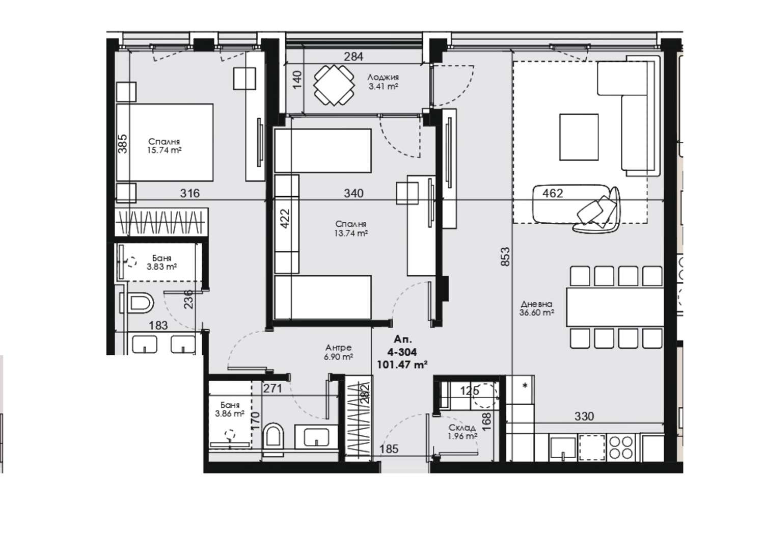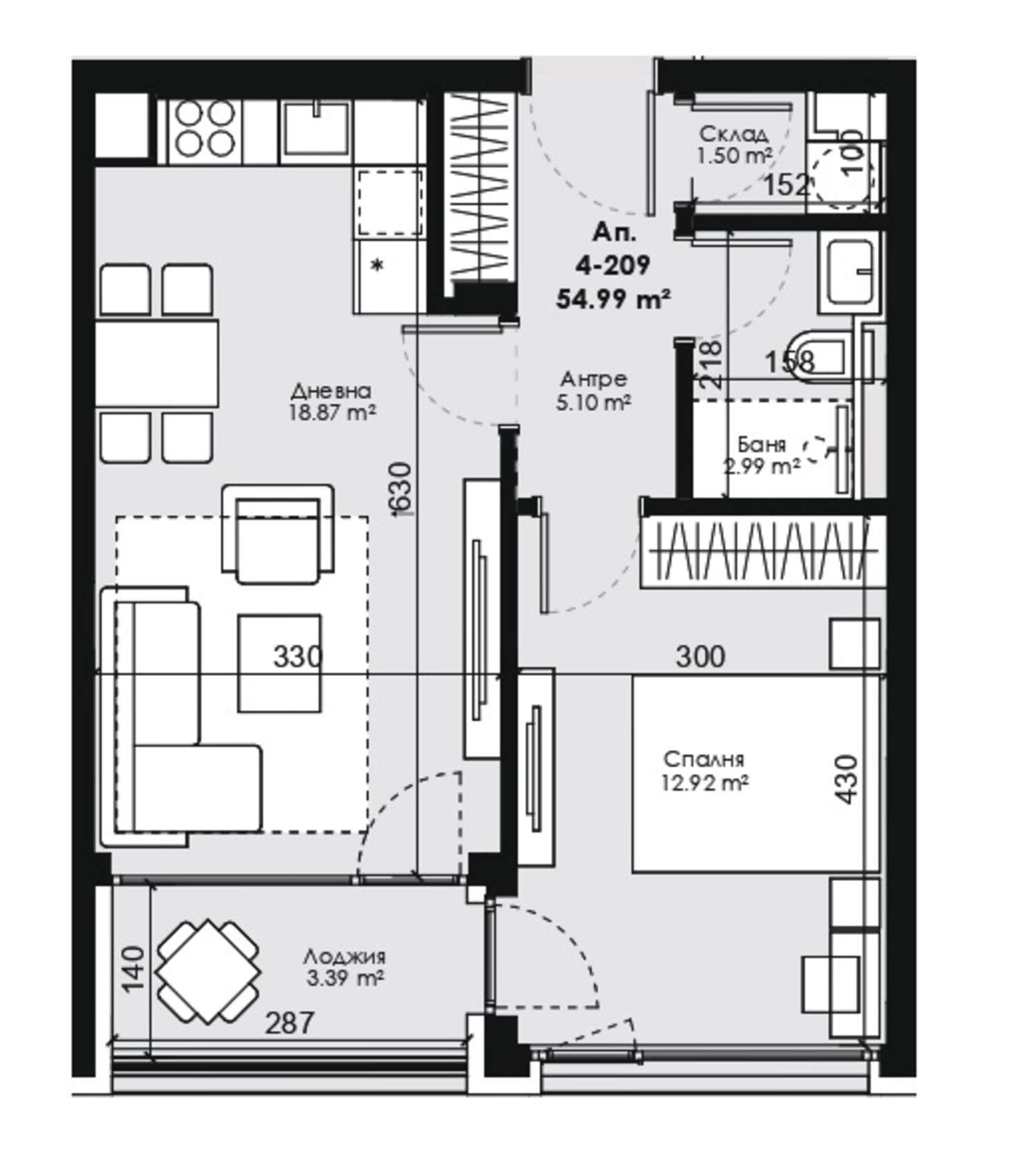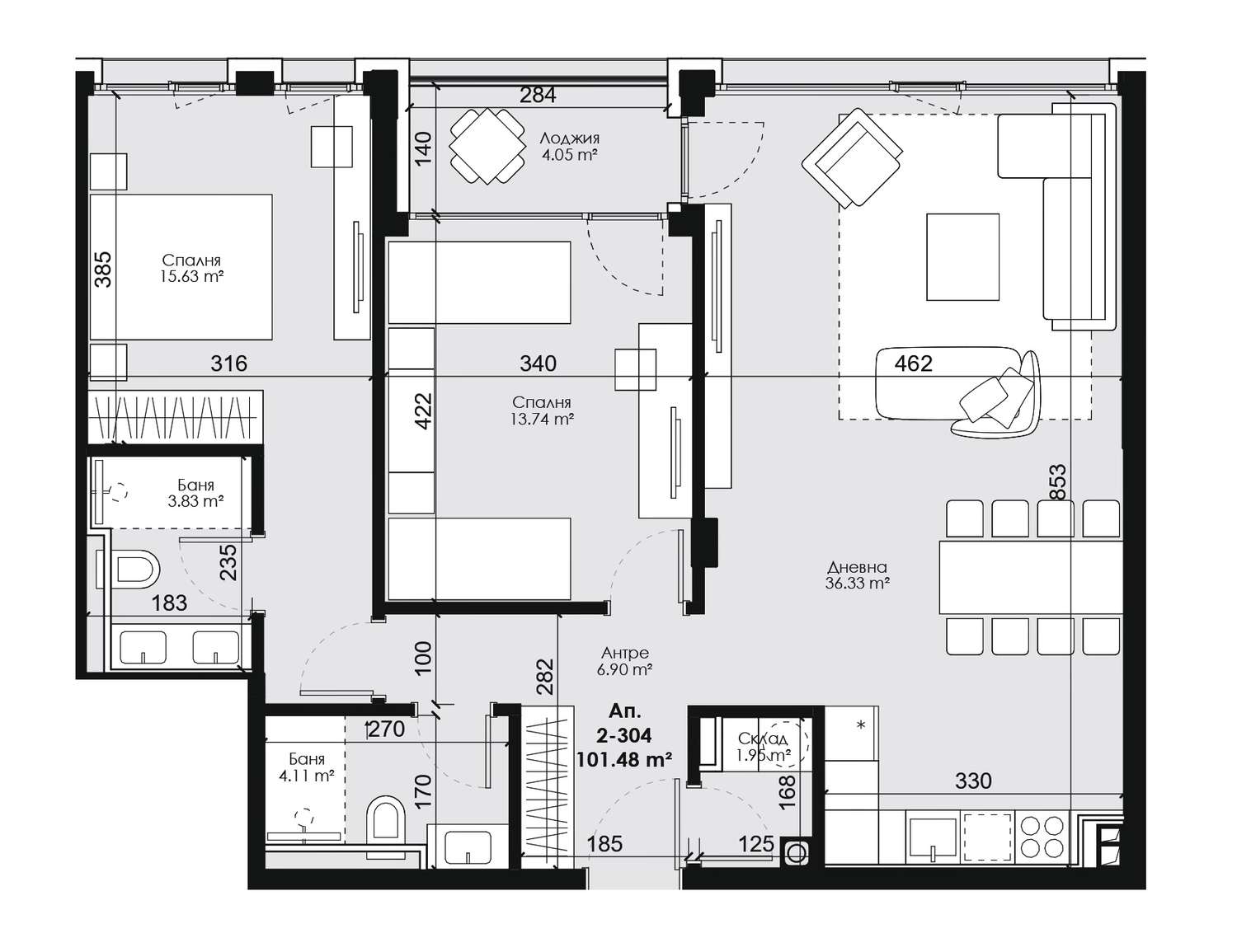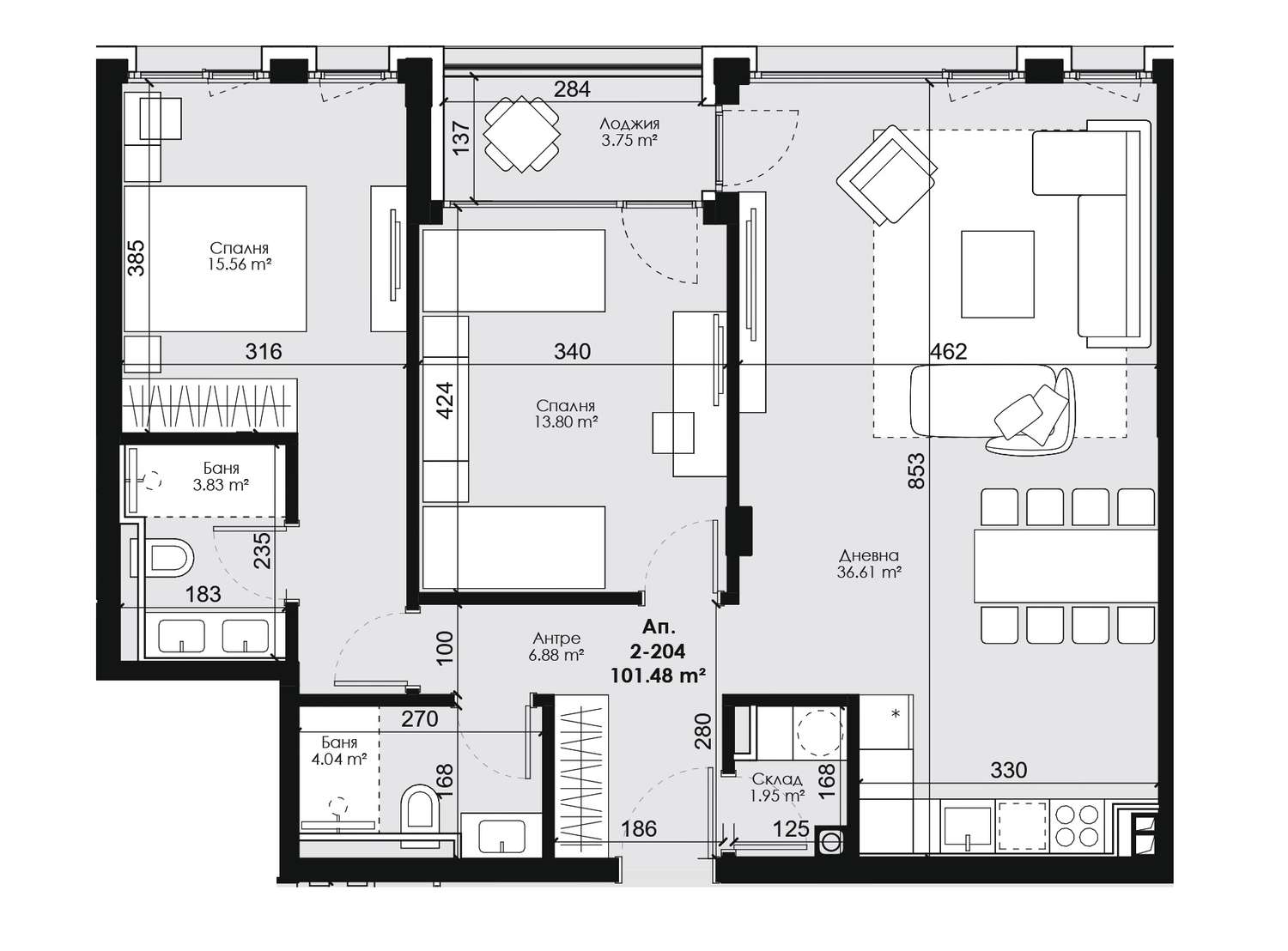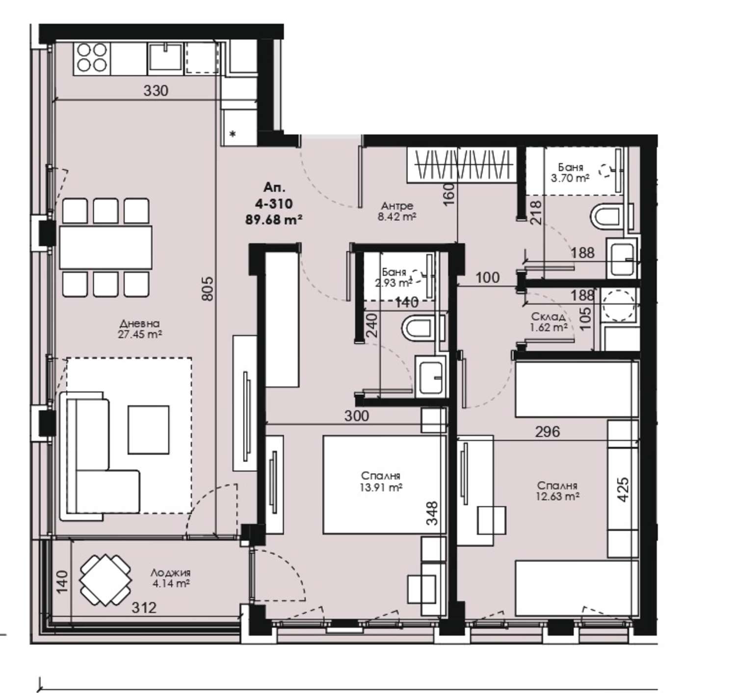(2 218 €/м2) (4 338,03 лв./м2)Площ: 90.42 м2 Етаж: 1