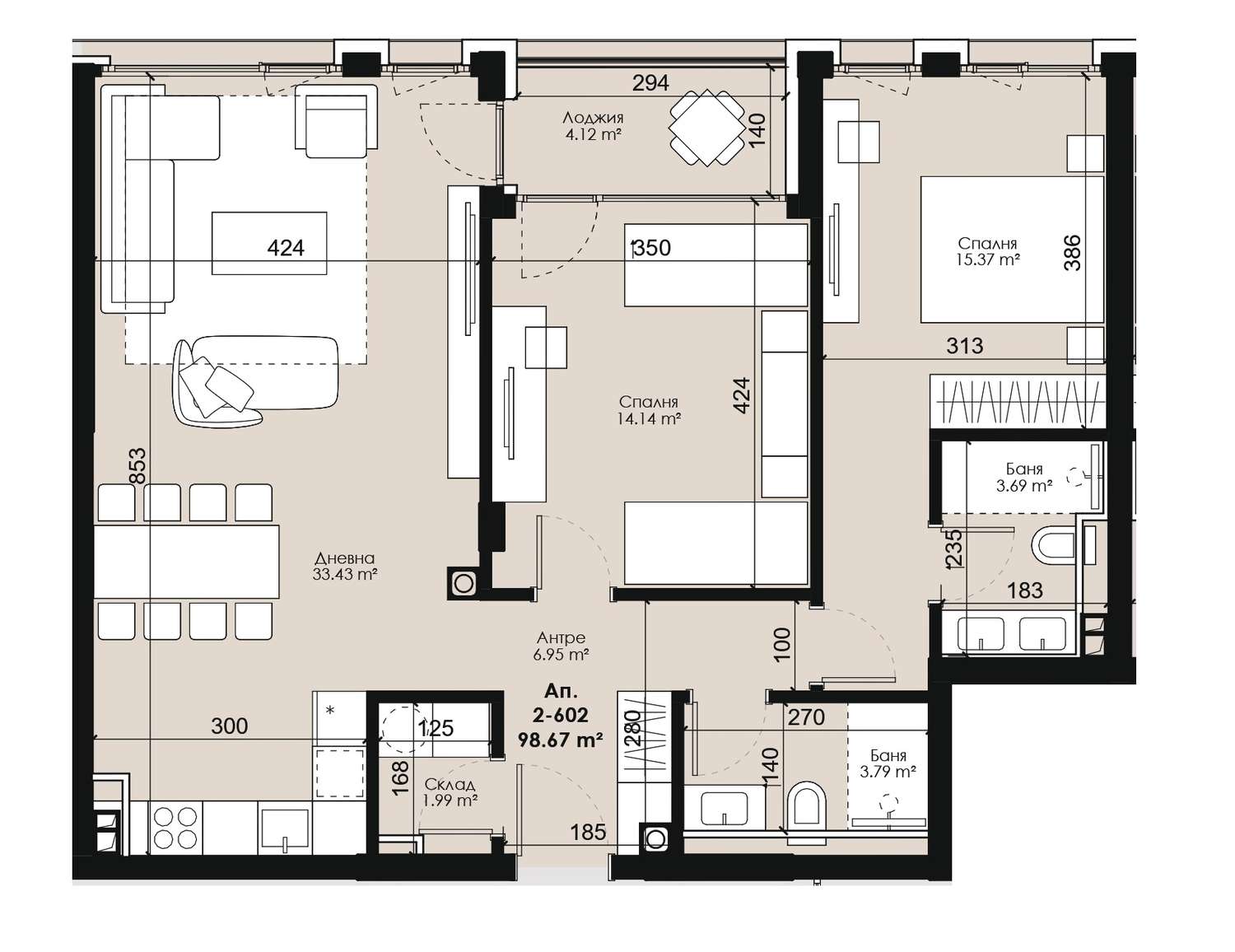 (1 809 €/м2) (3 538,10 лв./м2)Площ: 99.15 м2 Етаж: 6