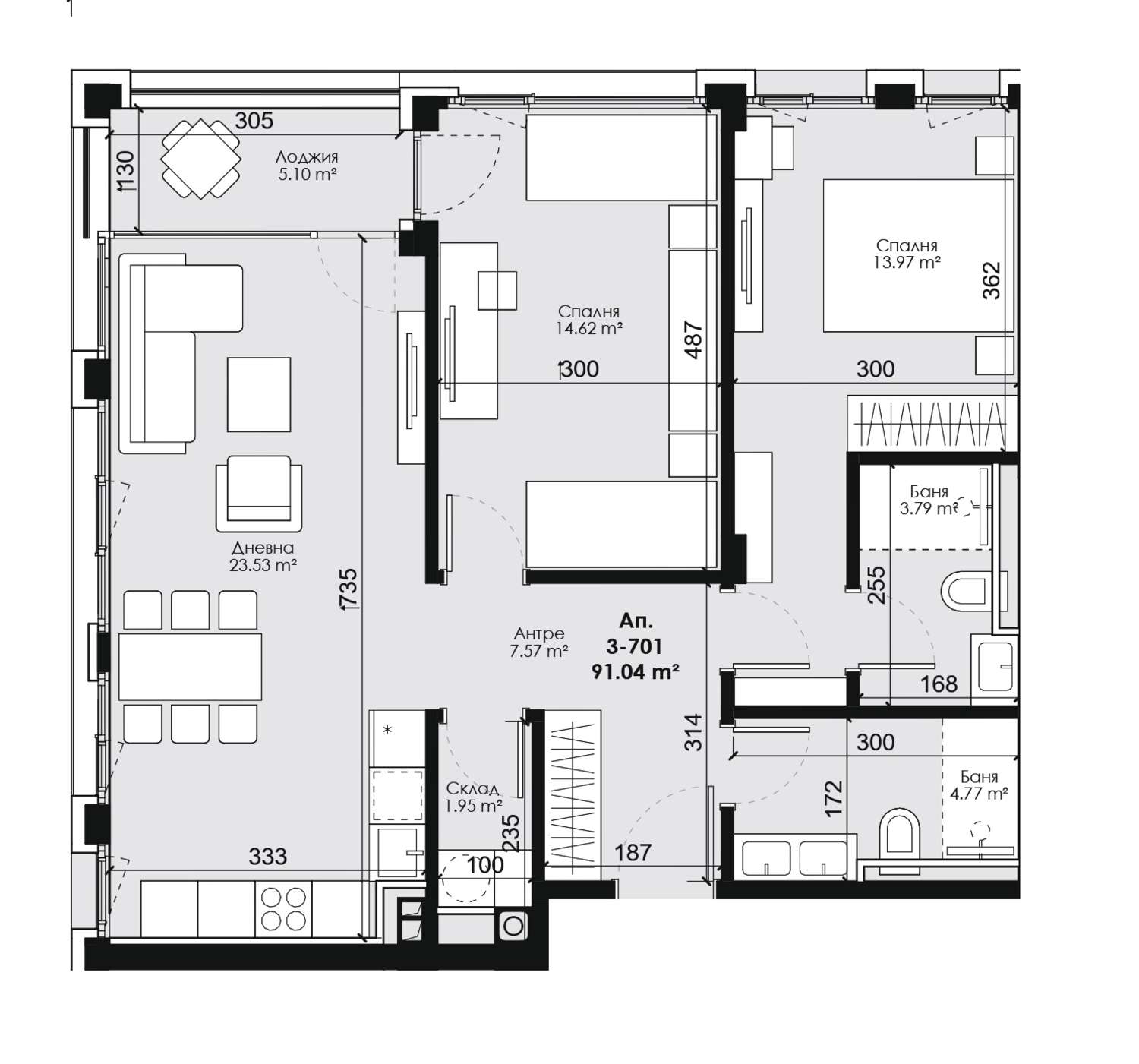 Тристаен апартамент