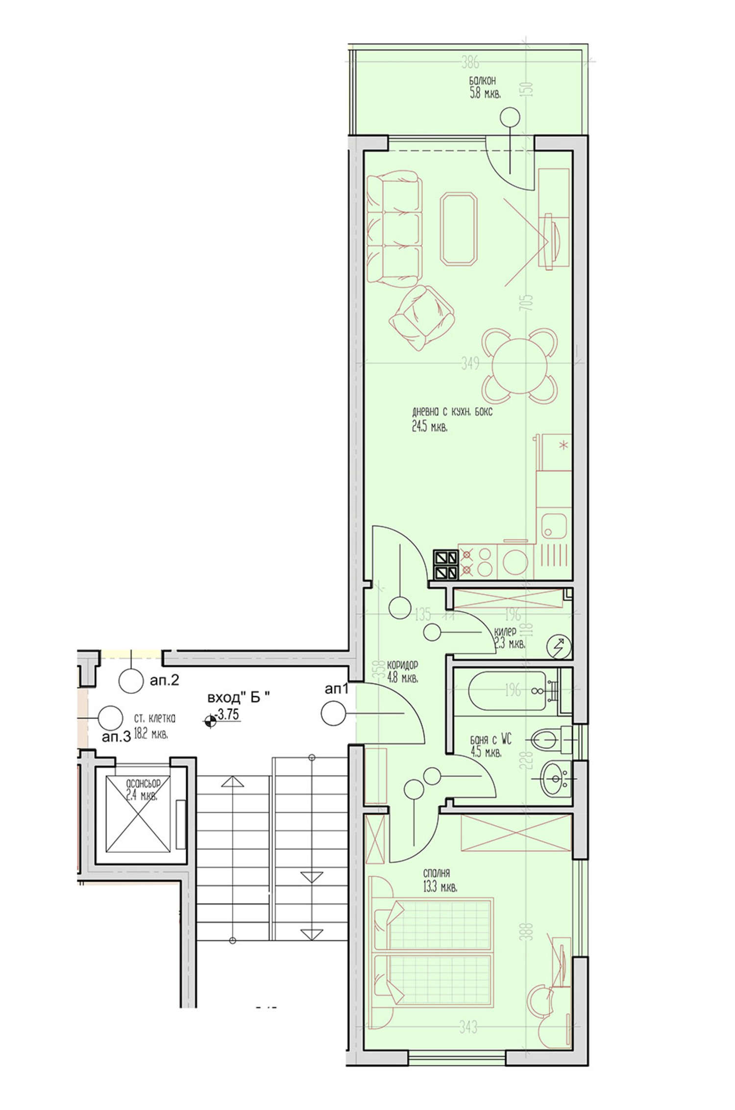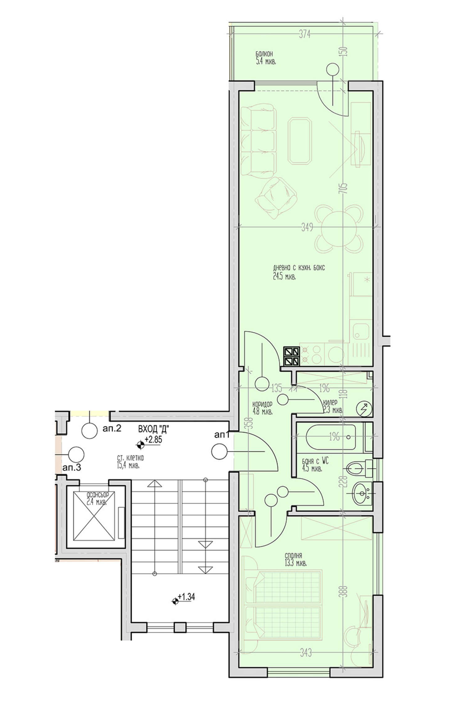 Двустаен апартамент