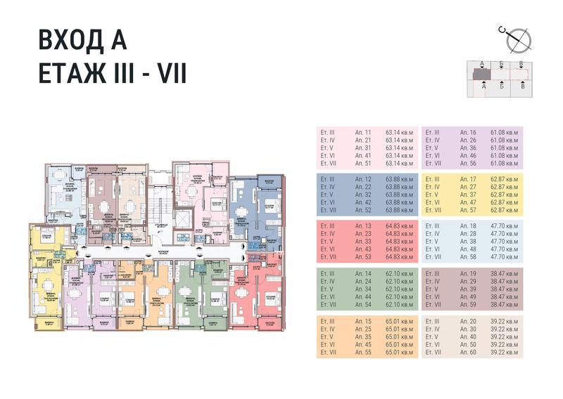 (1 550 €/м2) (3 031,54 лв./м2)Площ: 63.14 м2 Етаж: 3