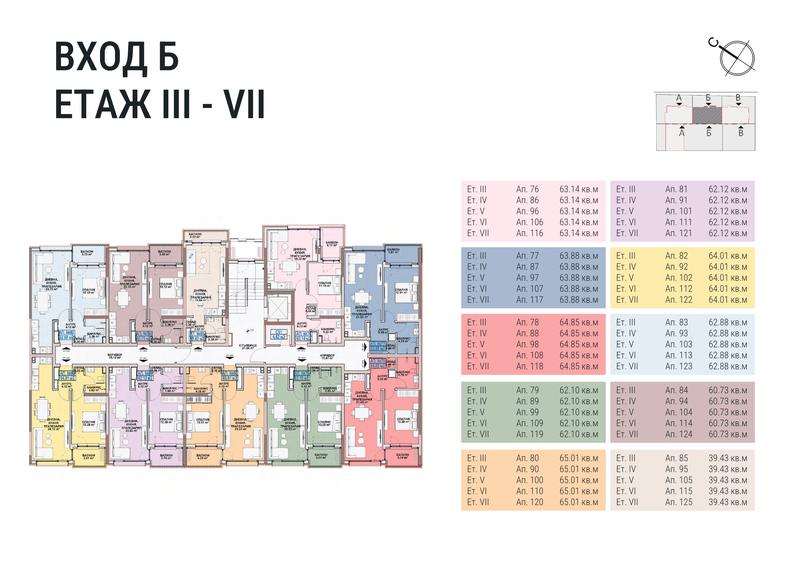 (1 510 €/м2) (2 953,30 лв./м2)Площ: 63.88 м2 Етаж: 2
