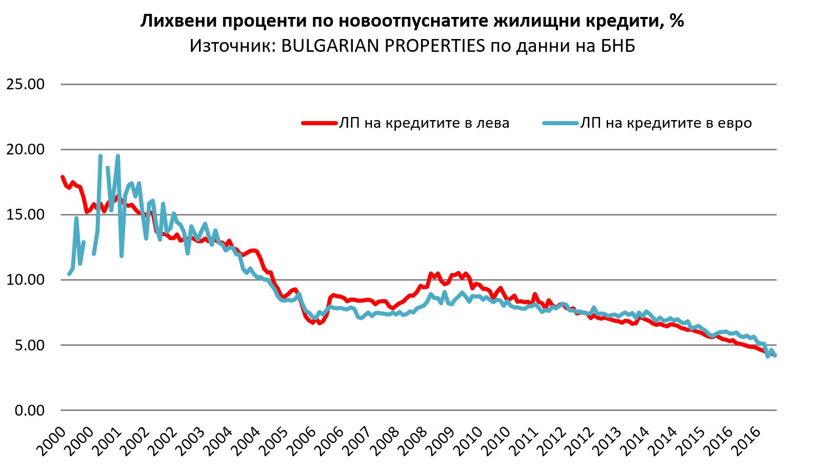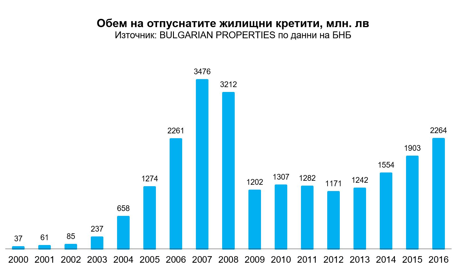 В пика преди кризата жилищното кредитиране достигаше до 6% от БВП, а лихвените проценти достигнаха до най-ниски нива около 7%. В момента и като достъпност кредитите са много по-добри, и като обем се движат в по-устойчиви и разумни граници.