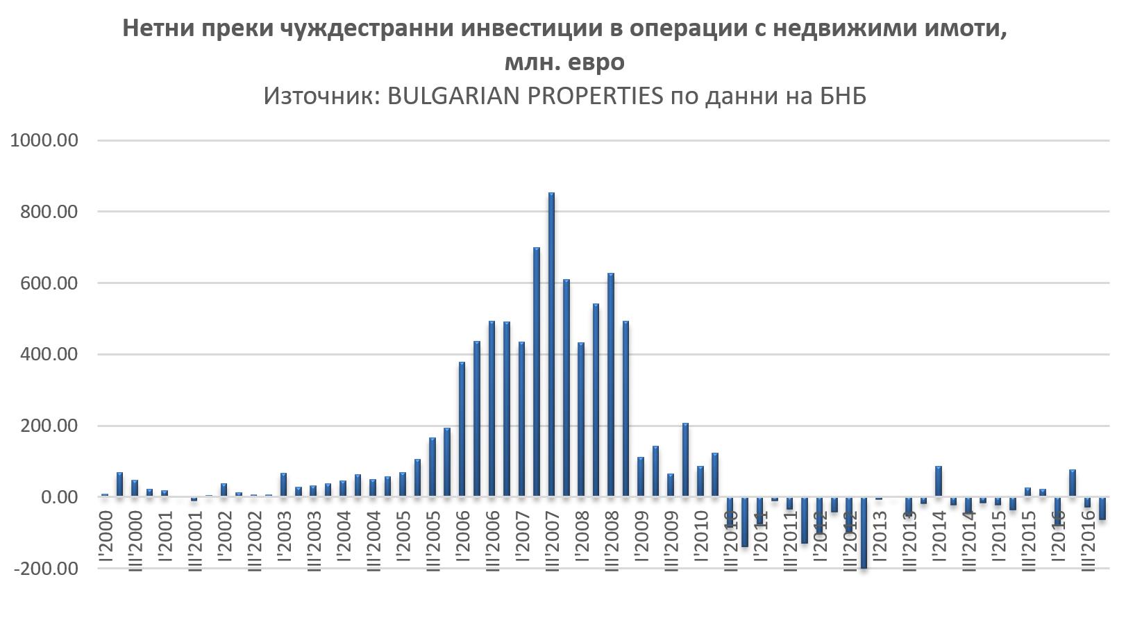 В началото на 2016 г. жилищата в София се продаваха средно за 835 евро на кв.м. Последва бързо нарастване до около 1000 евро на кв.м. година по-късно.