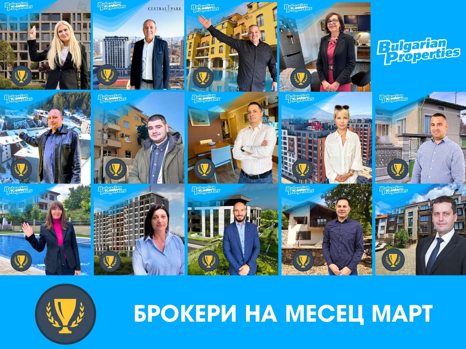Днес с гордост представяме Брокерите на месец март – топ професионалистите на BULGARIAN PROPERTIES, които постигнаха изключителни резултати и помогнаха на стотици клиенти да реализират своята успешна сделка!