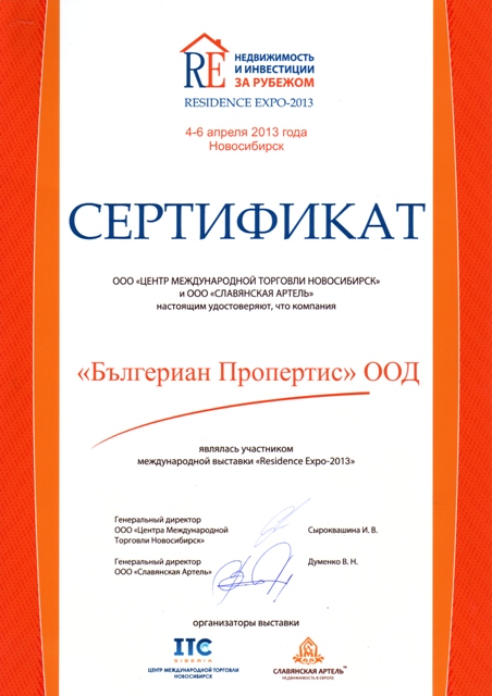 Организаторите, нашите партньори Вячеслав и Антонина Думенко от компанията „Славянская Артель”, се бяха погрижили да проведат едно международно изложение на високо ниво. Присъстваха компании представящи имоти от България, Испания, Чехия, Италия, ОАЕ, както агенции, така и строителни предприемачи. През трите дни 04 до 06.04.2013 г. щандовете на изложителите бяха посетени от множество потенциални купувачи, инвеститори и професионалисти в областта на имотите от Новосибирск, съседните градове-сателити и селища от цялата област. Събитието бе отразено от множество местни медии — телевизионни, радио и печатни.
