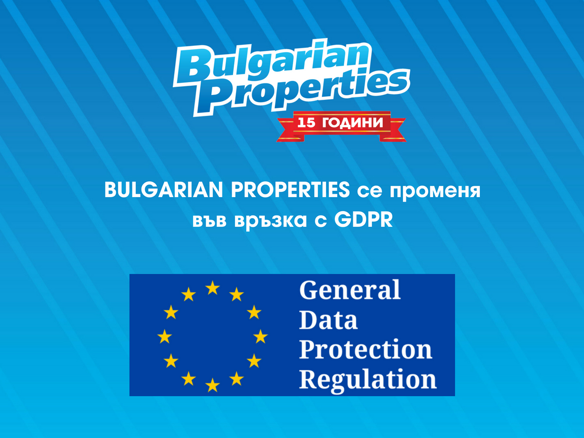 Във връзка с новите изисквания ще видите редица промени по сайта и процедурите на BULGARIAN PROPERTIES, които ще ви осигурят високо ниво на защита на личните данни, възможност за информиран избор и упражняване на правата ви като субекти на лични данни.