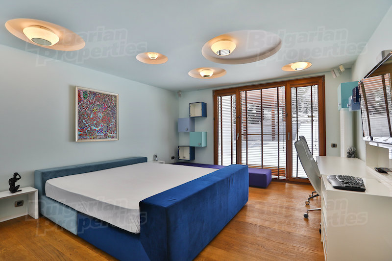 Главната спалня е на втория етаж, с достъп до балкон и самостоятелна баня с джакузи. На втория етаж има още два балкона и помещение за офис.