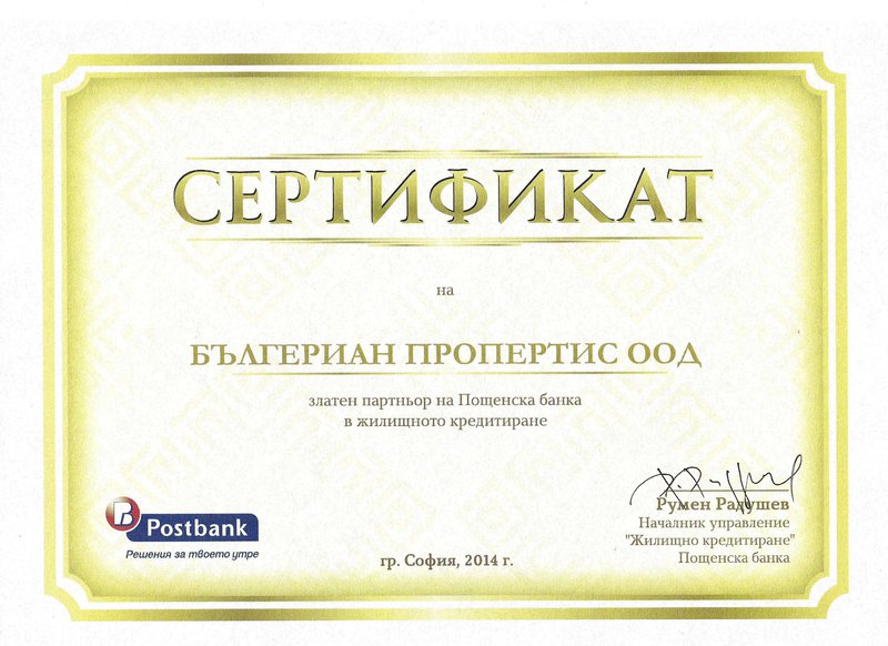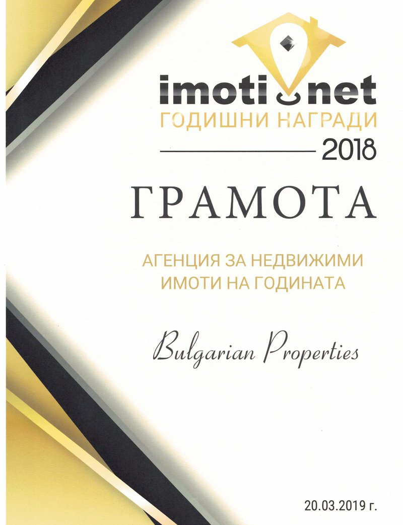 Грамоти и сертификати на BULGARIAN PROPERTIES - агенция на годината за 2018 г.