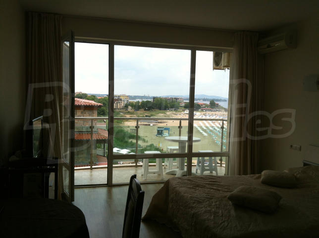 Апартаментът е с площ от 74 кв.м и се намира на 3 етаж на луксозно изпълнена нова сграда, разположена само на около 30 м от морето. Апартаментът е двустаен. Състои се от хол с кухня, много просторен, където има падаща спалня, и отделно една детска стая с двуетажно легло. Апартаментът има две тераси, едната е по-голямата с гледка, а другата е мъничка тераса към детската и няма гледка. Банята също е просторна с душкабина. В коридора има голям гардероб-дрешник. В самата сграда през лятото има ресторант, басейнът е с директна гледка към морето. Има и малък детски кът до басейна и 24 часа охрана и през зимата, както и рецепция работеща през лятото. Апартаментът се продава напълно обзаведен и оборудван.