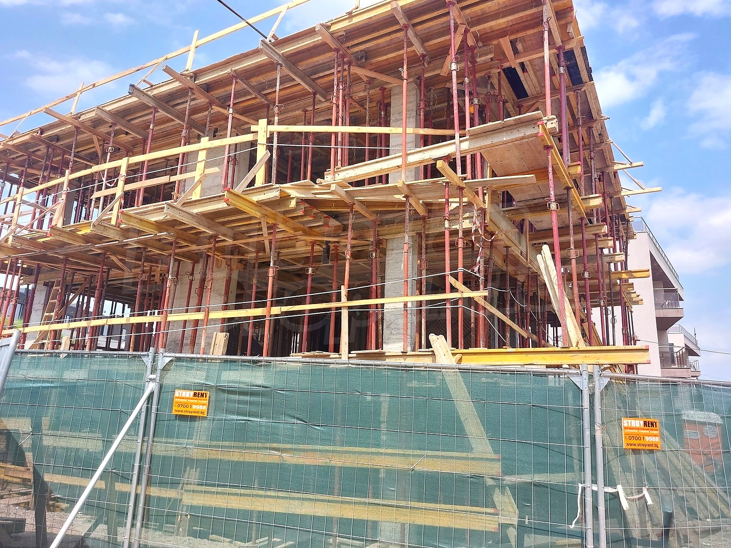 • Конструкцията на сградата е монолитна, изпълнена от стоманобетон с носещи колони, греди и плочи, гарантираща здравина и дълготрайност.