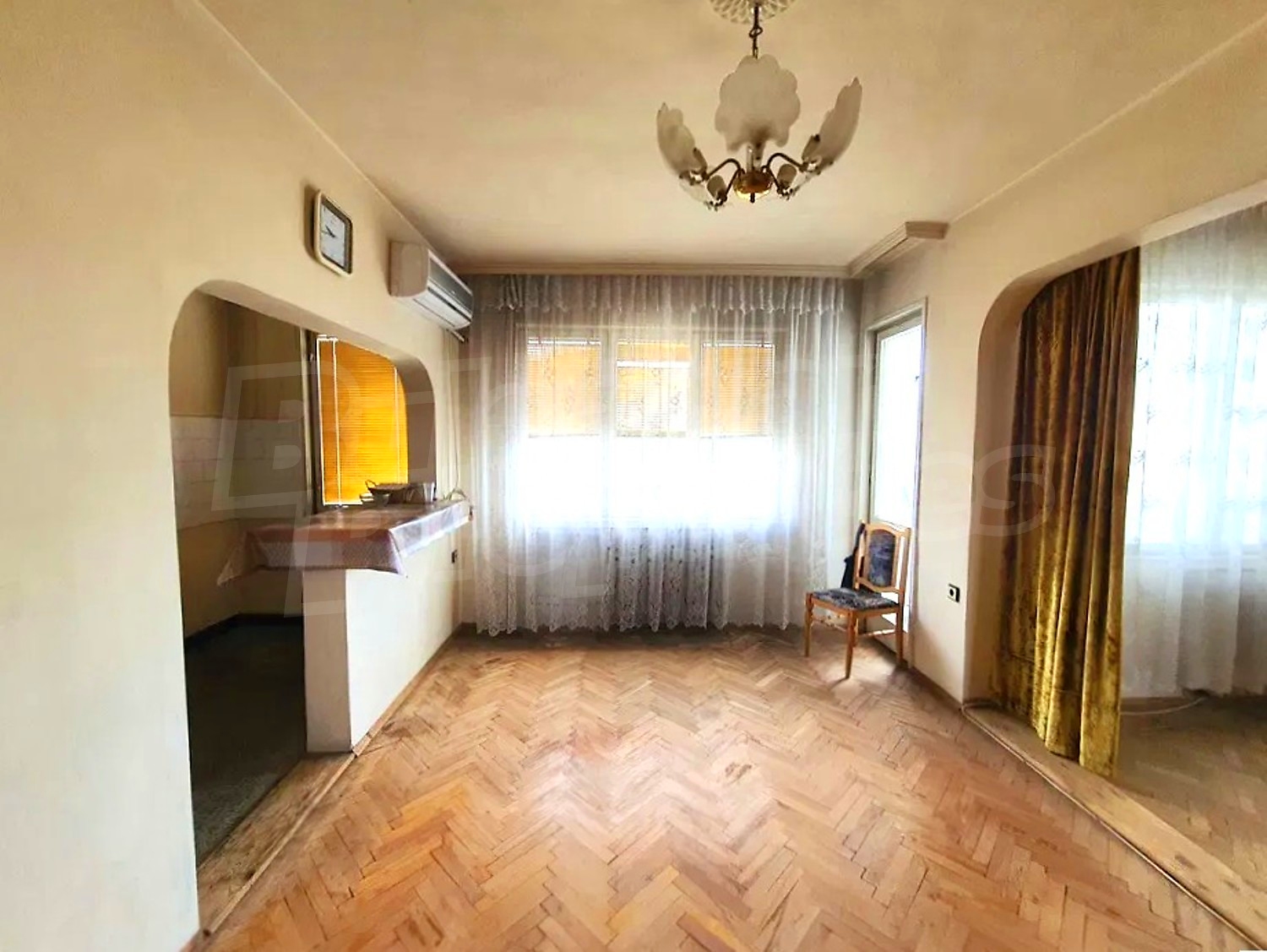 Изложението е изток/запад за естествена светлина и комфорт през целия ден. Имотът е за ремонт.