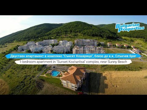 Готов за ползване двустаен апартамент в Сънсет Кошарица/Sunset Kosharitsa - затворен, целогодишно охраняем комплекс, разположен на тихо и комфортно място за почивка, заобиколено от много зеленина, в подножието на Стара планина, само на 6 км от плажовете на Слънчев бряг. В близост до комплекса има автобусна спирка (200 м.), магазини, кафене, ресторант, училище, църква, болница, аптека, детска градина, хипермаркет. Годишна такса поддръжка на комплекса - 9 евро на м2.