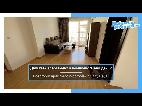 Готов за нанасяне двустаен апартамент в затворен комплекс Съни Дей 6/Sunny Day 6, разположен на 2 км от плажовете на Слънчев бряг. За удобство на живущите на 50 метра от комплекса се намира автобусна спирка за курорта. Sunny Day 6 успява да съчетае предпочитаната тишина на селото и бързия достъп до оживения морски курорт Слънчев бряг със своите барове, ресторанти, дискотеки и до златистите плажове. Отличен ваканционен и инвестиционен имот.