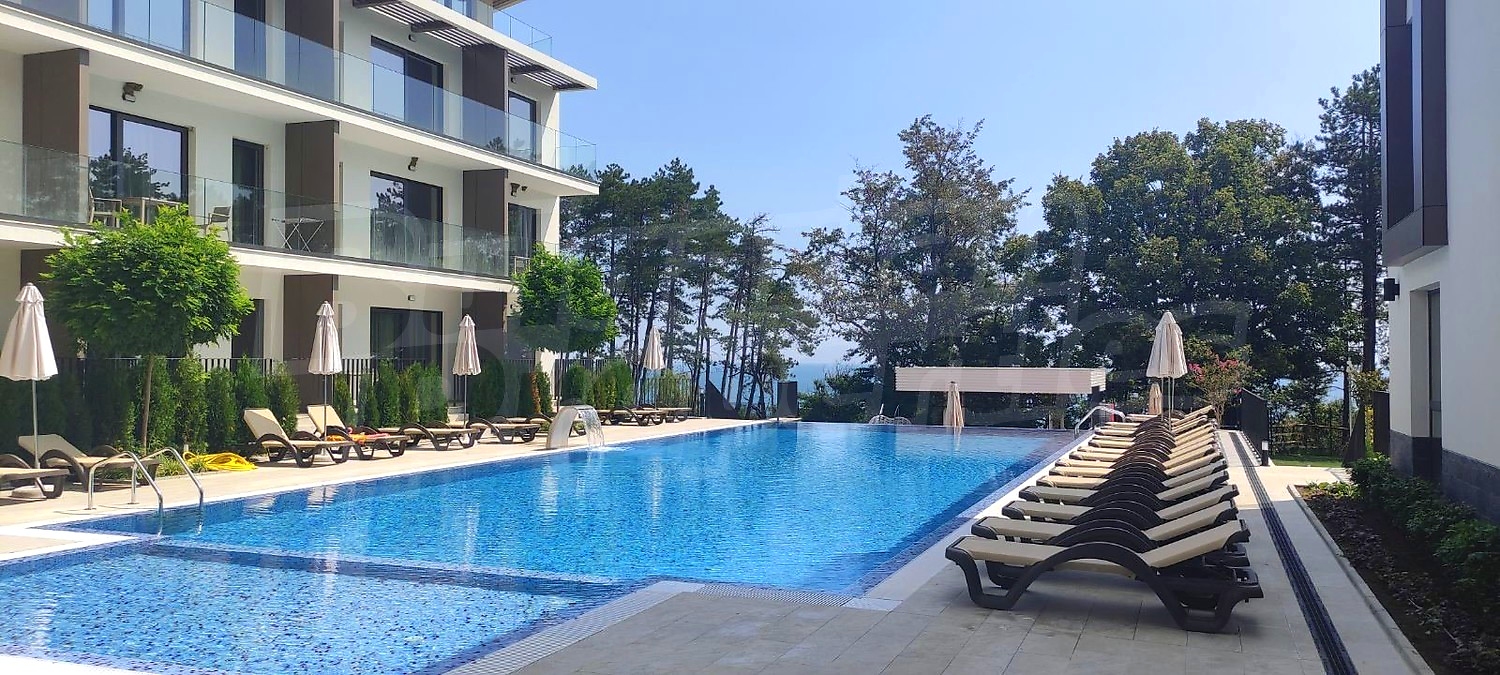 Имаме удоволствието да предложим за продажба двустаен апартамент със съвременна визия и дизайн в нов комплекс, предлагащ комфорт и изискана обстановка за ценители, разположен в уникално красив район с борова гора и море, с директен достъп до плажа (50 м), само на 3 минути разстояние от идеалния център на Обзор с градски удобства.