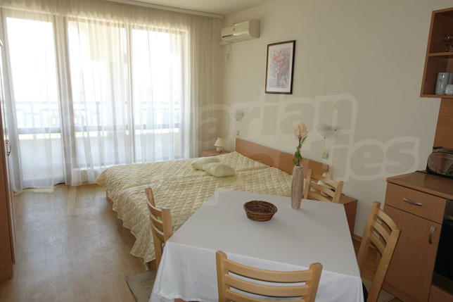 Предлагаме за продажба двустаен апартамент, разположен в комплекс Панорама Бей / Panorama Bay, на 400 м от плажа, на 100 м от автобусна спирка за връзка с околните населени места и на 500 м от центъра на морски курорт Свети Влас. Комплексът работи целогодишно и е снабден с асансьор. Таксата за поддръжка е 650 евро /година.