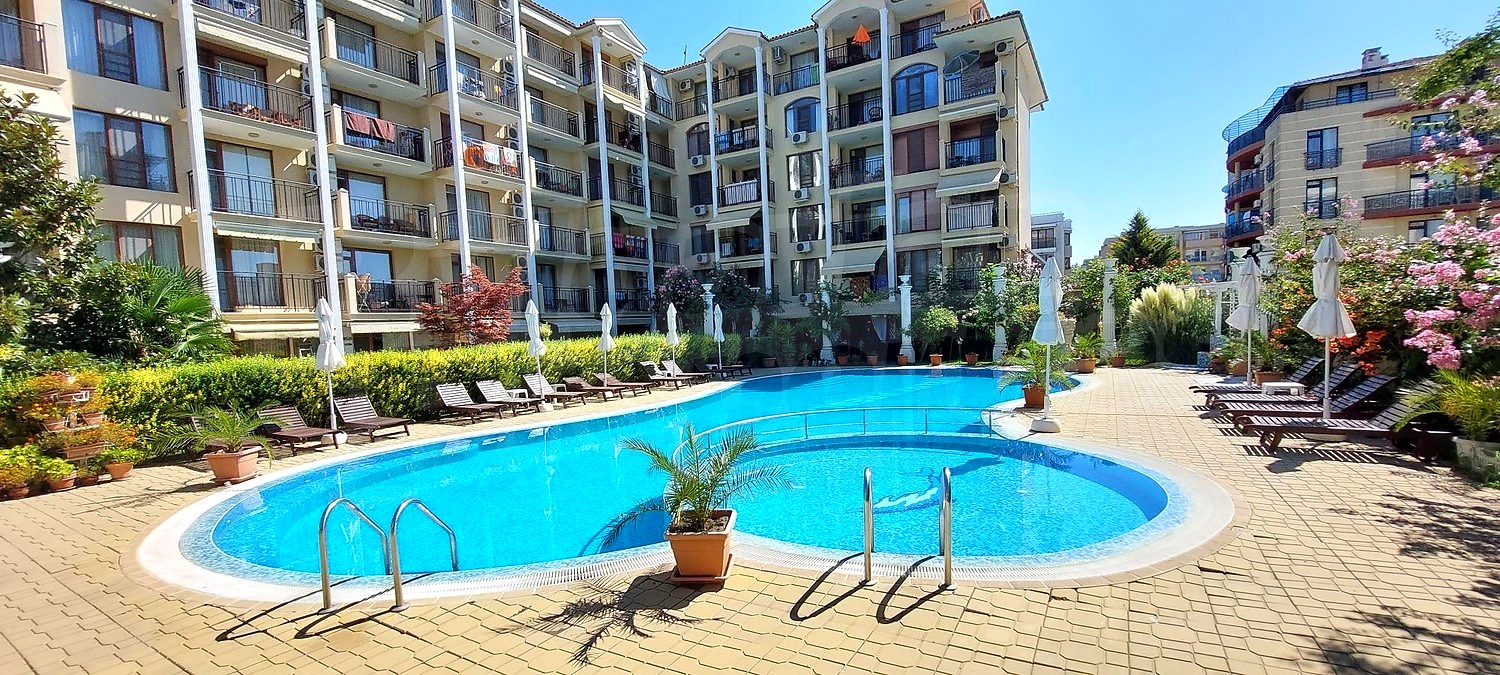 к.к. Слънчев бряг, "Център"Имот с гледка към вътрешен двор и басейн в комплекс с удобства на 7 мин от плажа