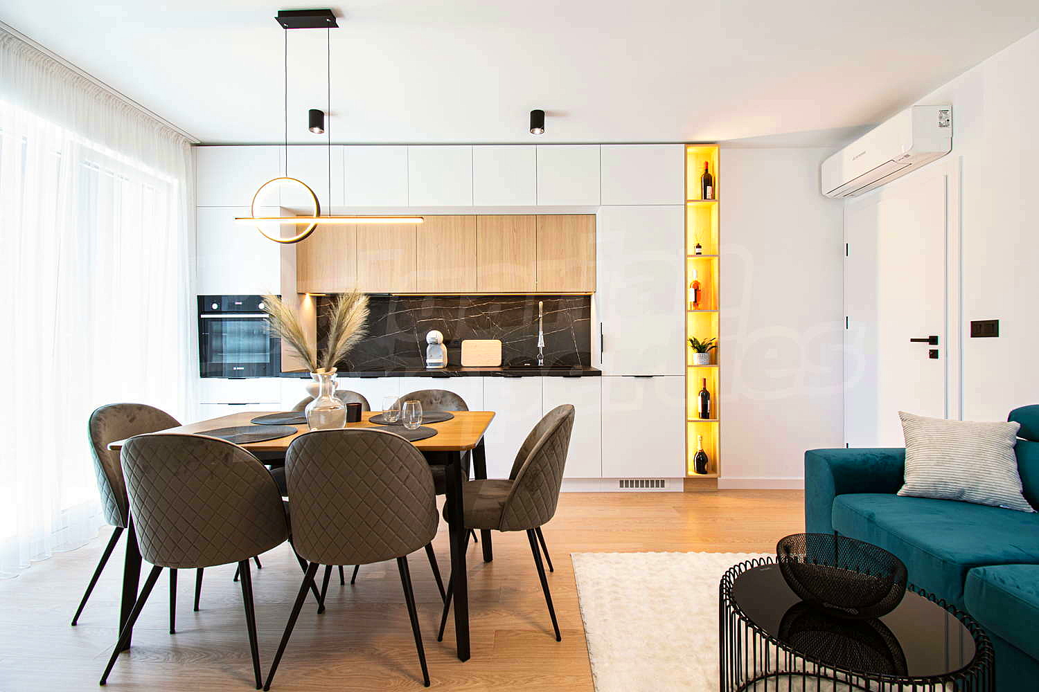 Жилището е изпълнено по индивидуален дизайнерски проект, създаден с внимание към всеки детайл – от цветовите решения и осветлението до избора на мебели и материали. Интериорът се отличава с модерна визия, функционалност и усещане за домашен уют, подходящ за взискателни наематели, търсещи висок стандарт на живот.