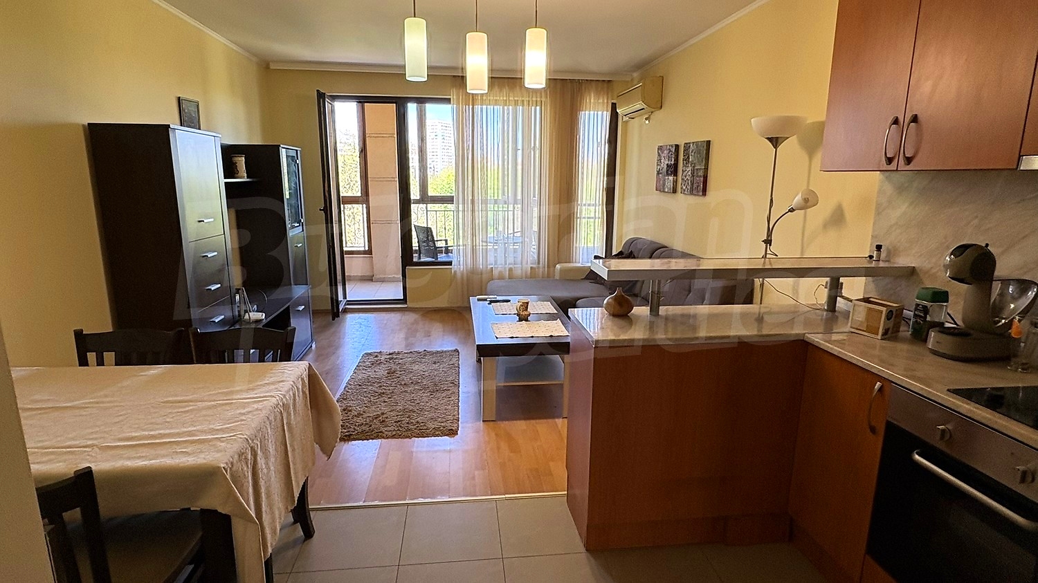 • Дневна с кухненски бокс – просторна и светла, с напълно оборудвана кухня, подходяща както за ежедневие, така и за посрещане на гости