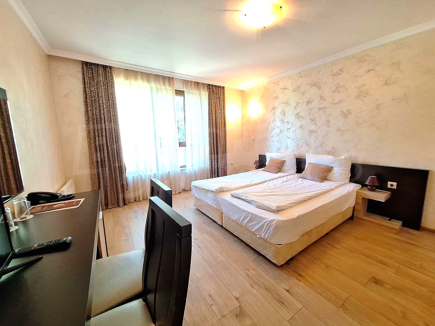• Дневна със спален кът - голяма спалня, две нощни шкафчета, гардероб, бюро с два стола, малък хладилник;