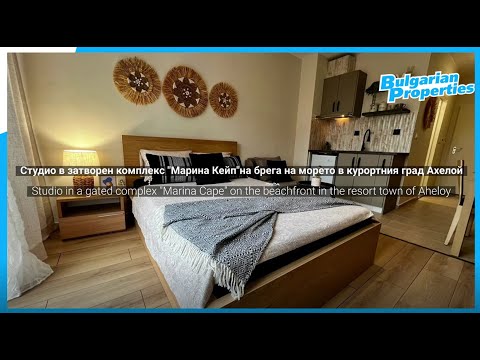 Обзаведено студио в затворен комплекс Марина Кейп/Marina Cape на брега на морето в курортния град Ахелой, на 3 км от с. Равда и на 6 км от Слънчев бряг и Несебър.