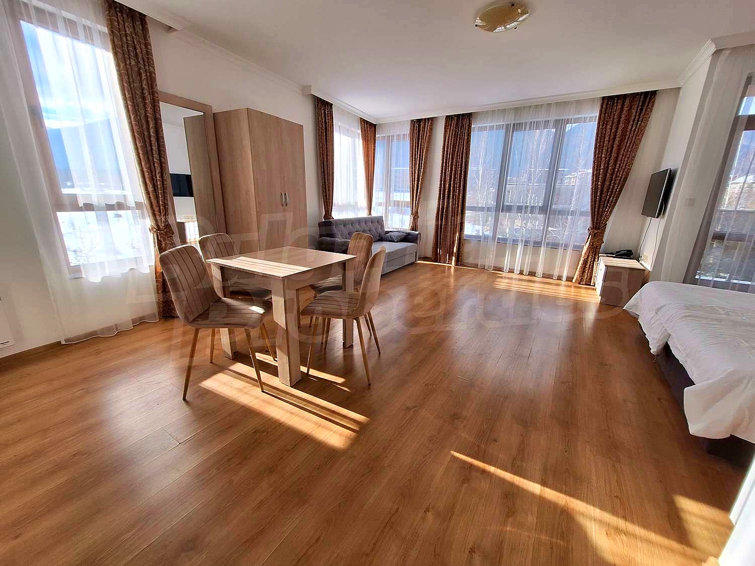 Апартаментът е обзаведен и готов за ваканционно ползване или целогодишно живеене. Живописна локация, отлични условия за ски спортове, голф, планински, конфрентен и рекреационен туризъм - това са само малка част от предимствата, от които ще може да се възползвате като нов собственик на този чудесен имот.