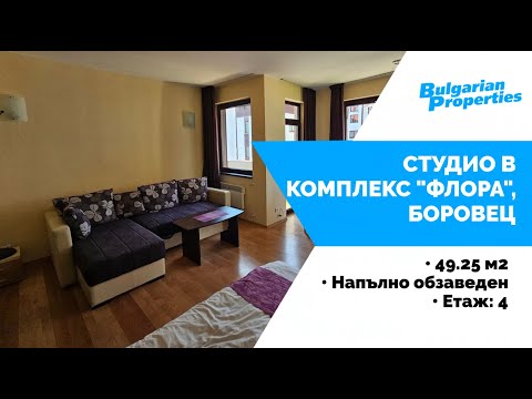 Готов за нанасяне едностаен апартамент в стилния хотелски комплекс „Флора“ в централната част на ски курорт Боровец, само на 100 метра от централната станция на кабинковия лифт Ястребец и на 500 метра от резиденция „Царска Бистирица”.