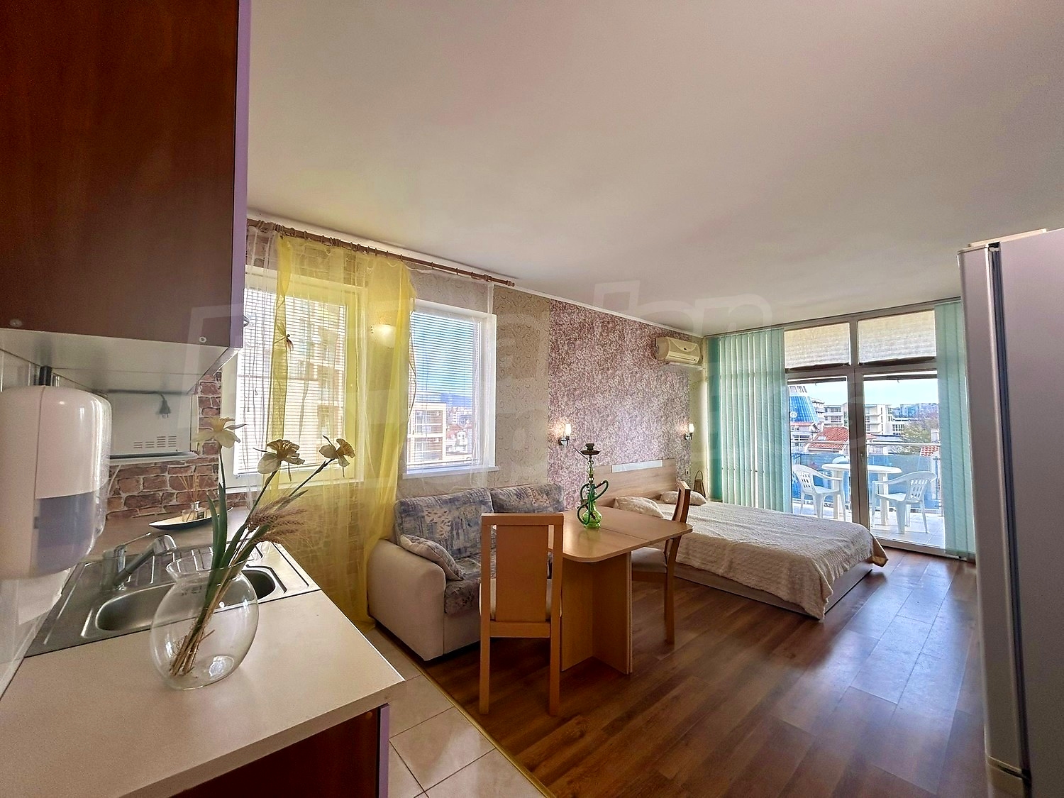 к.к. Слънчев брягОбзаведено студио за целогодишно живеене, с потенциал за двустаен апартамент с удобен достъп до морето