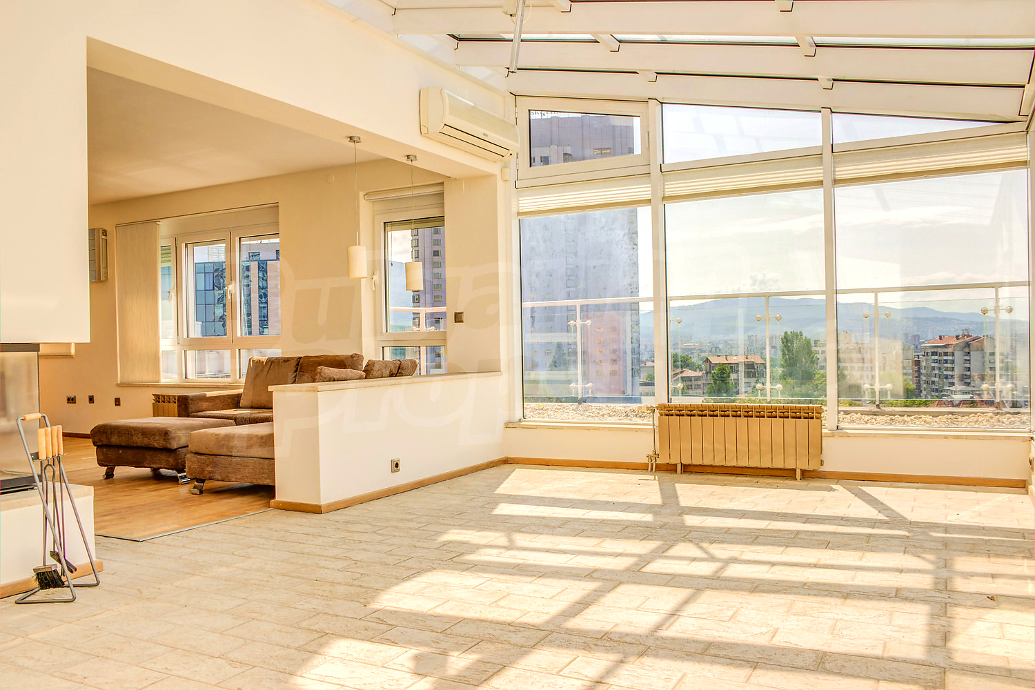 Зимна градина, кухня с бар и прекрасна гледка на 360 градуса над София и Витоша планина са само част от предимствата на практичния апартамент.