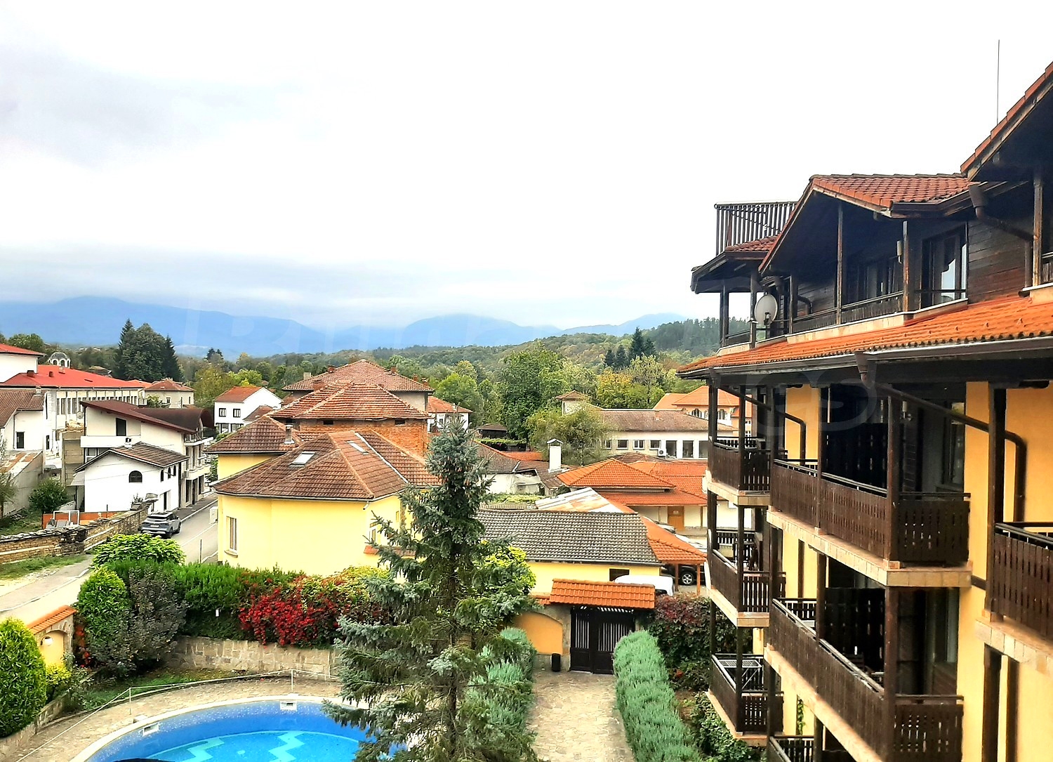 Имотът се състои от хотелска част с красив изглед на три етажа, с две крила, двор с басейн, ресторант/лятна градина и открит просторен паркинг.