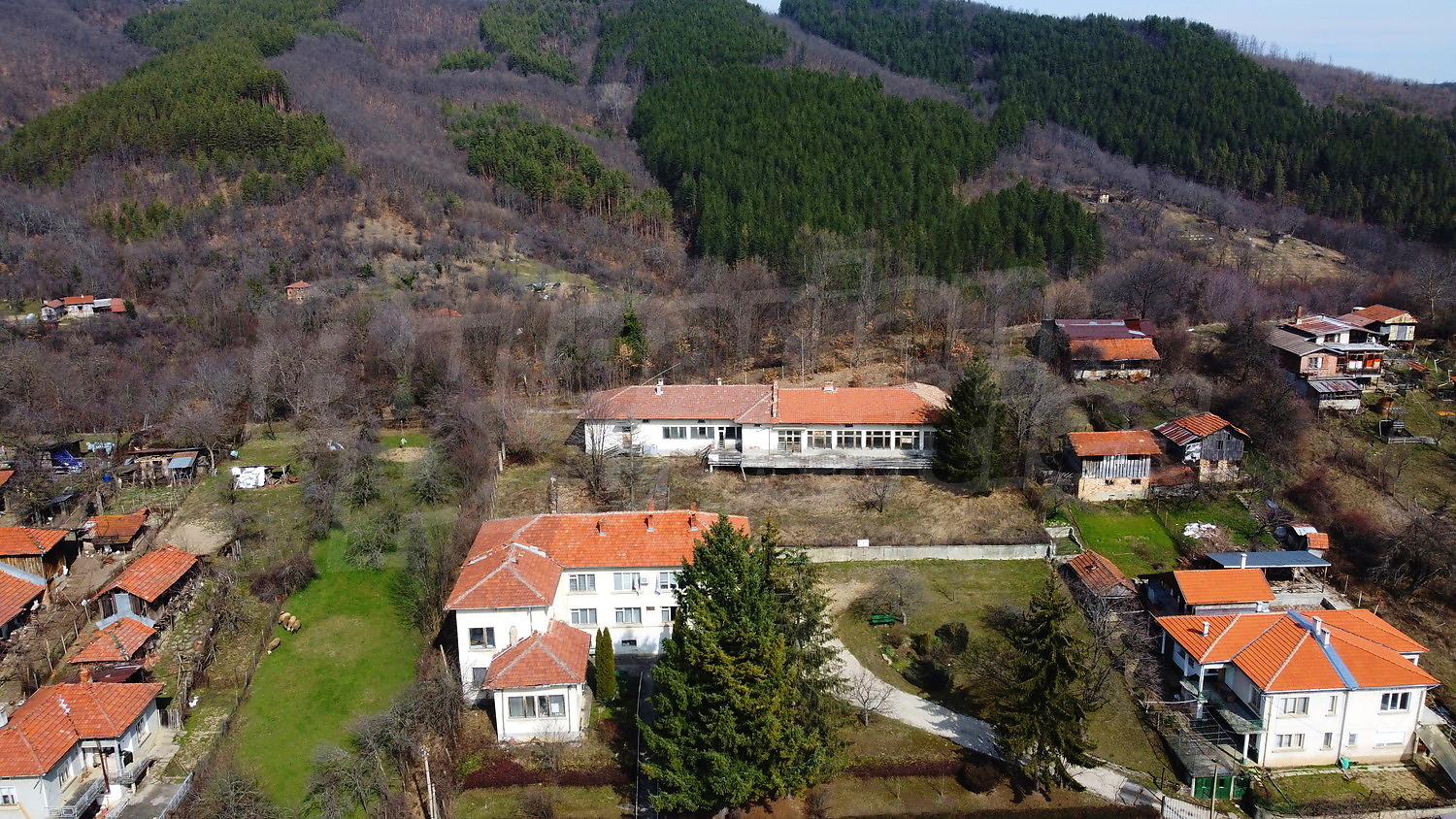 Имотът е разположен на централно, но същевременно уединено и панорамно място — в близост до кметството, но без непосредствени съседи. Представлява масивна тухлена сграда, изградена през 1984 г., с разгъната застроена площ от 540 кв.м. на един етаж. В миналото е функционирала като здравен дом и детска градина, което гарантира стабилна конструкция и функционално вътрешно разпределение.
