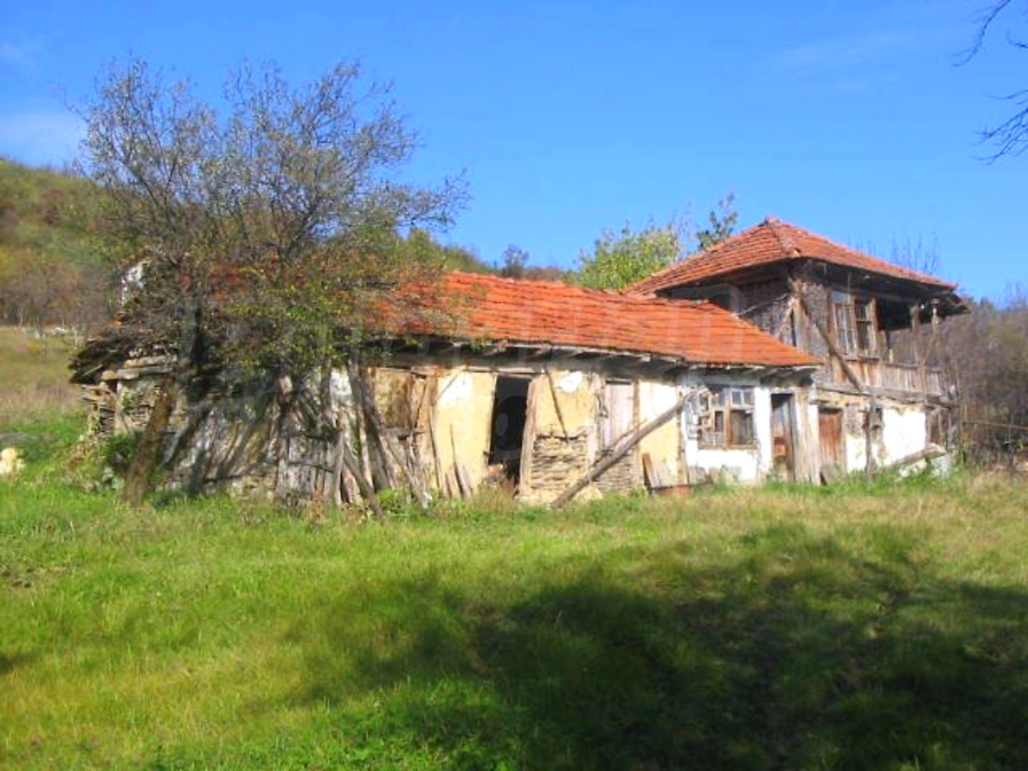 This is a house with several outbuildings, which is located in the town of Yablanica – close to the capital Sofia /only 1 hour drive . Yablanitsa is within easy reach on a motorway. It is located at an important crossway from Sofia to Varna, our seaside capital. Through the town a Klenovik River flows. There are several caves in the area too. The area is very beautiful and perfect for outdoor tourism.All of the building must be taken down as they are in awful condition. The place has its good features too. It is on a hill, which offers an amazing view upon the mountain and the town itself. There are running water and electricity installed near the house. Also there is a big yard that is slightly inclined.