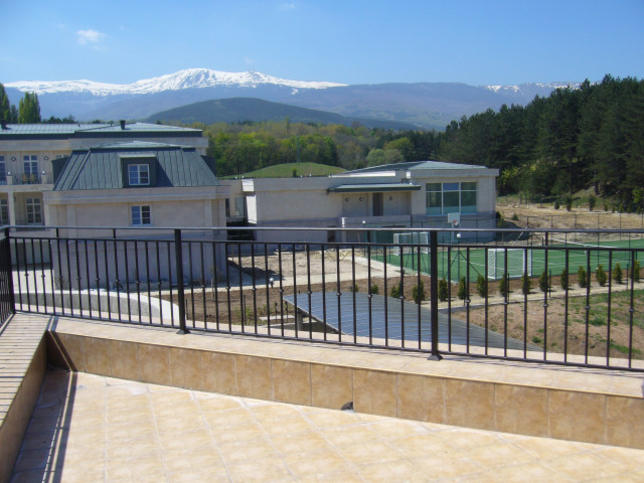 Редова къща в спокойния квартал „Панчарево”- в удобна близост до Околовръстен път и Самоковско шосе. Районът осигурява тиха жилищна среда и уединение сред много зеленина. Имотът е разположен в луксозния комплекс от затворен тип „Маунтин Вю Вилидж”, състоящ се от общо 5600 кв.м. жилищна площ, разпределени на 18 дка парцел. Обитателите се възползват от следните екстри и услуги- денонощна охрана и видеонаблюдение, паркинг площи, красиво озеленени площи и изградени шадраван, алеи и места за отдих, басейн и снегопочистване през зимния сезон. Отоплението в имота е на ток- посредством електрическо котле, монтирани са и два климатика „Neo”.