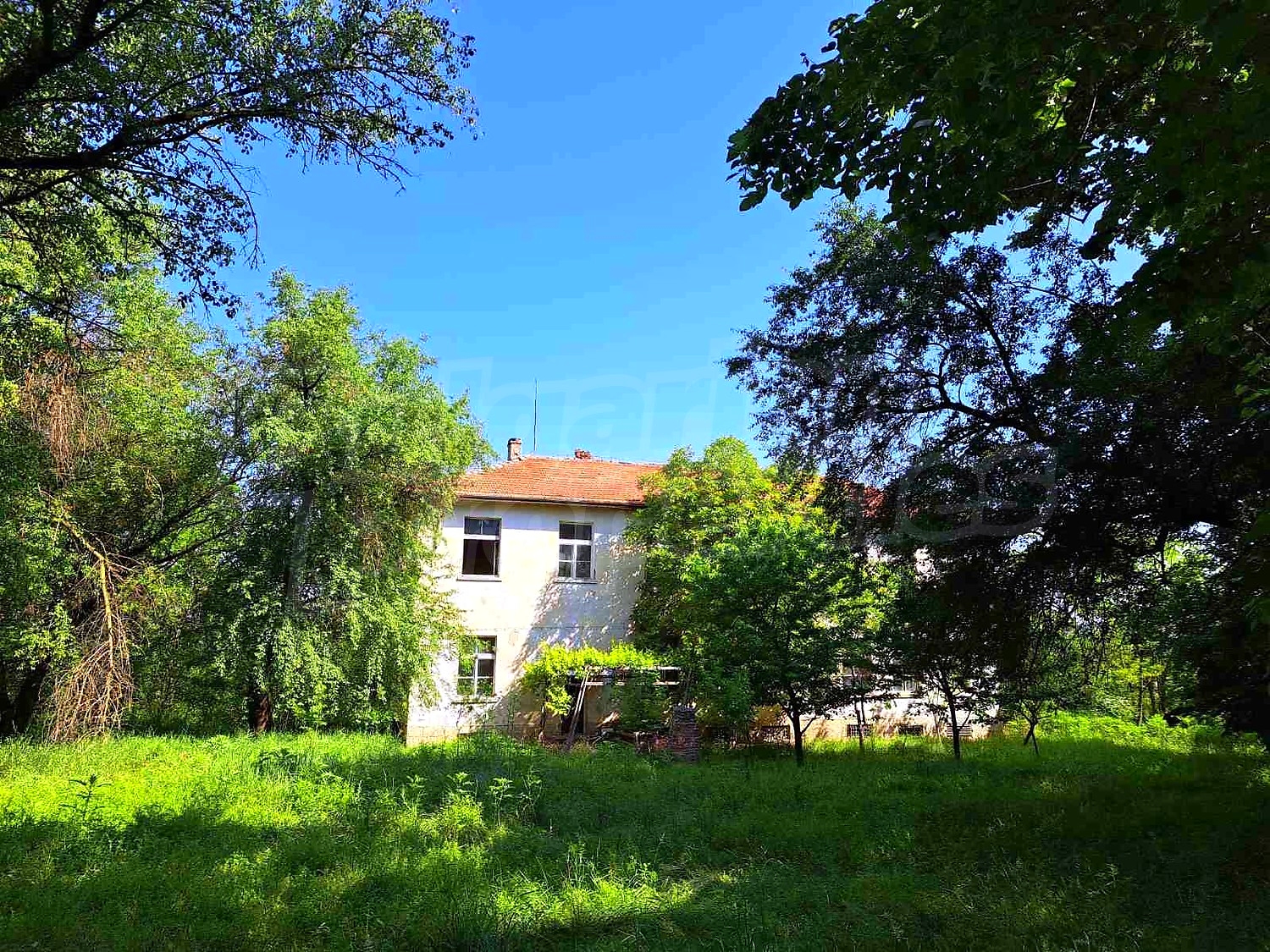 Имотът има нужда от ремонт. Към него има дворно място с площ 3640 кв. м. с дървета - липи, орехи, акация, круши, ябълки.