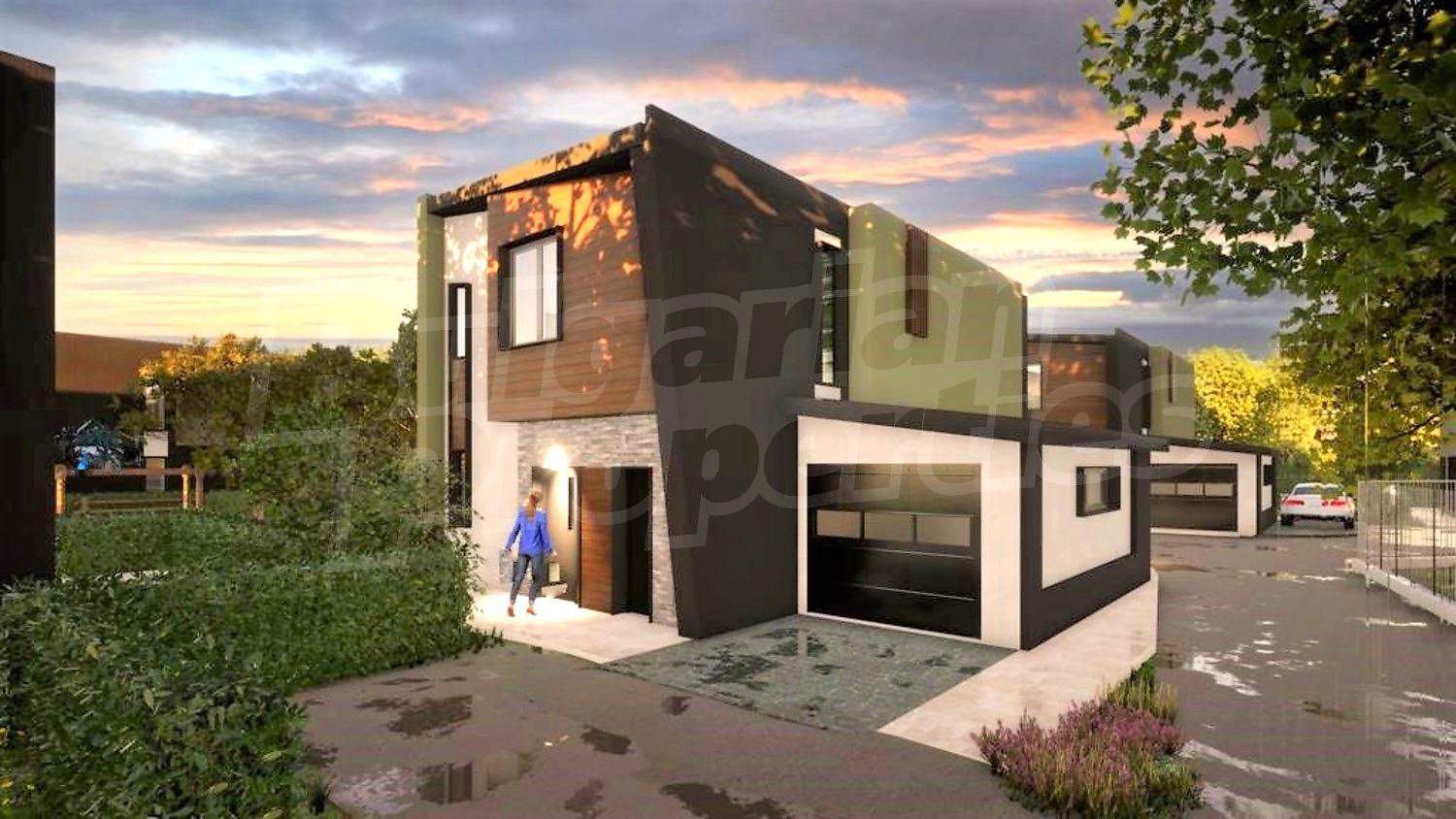 Къщите са разположени в малък затворен комплекс от 12 броя къщи всяка с площ от 155 кв.м. и самостоятелен двор от 200 до 300 кв.м. Биват три вида и се отличават със съвременна архитектура: