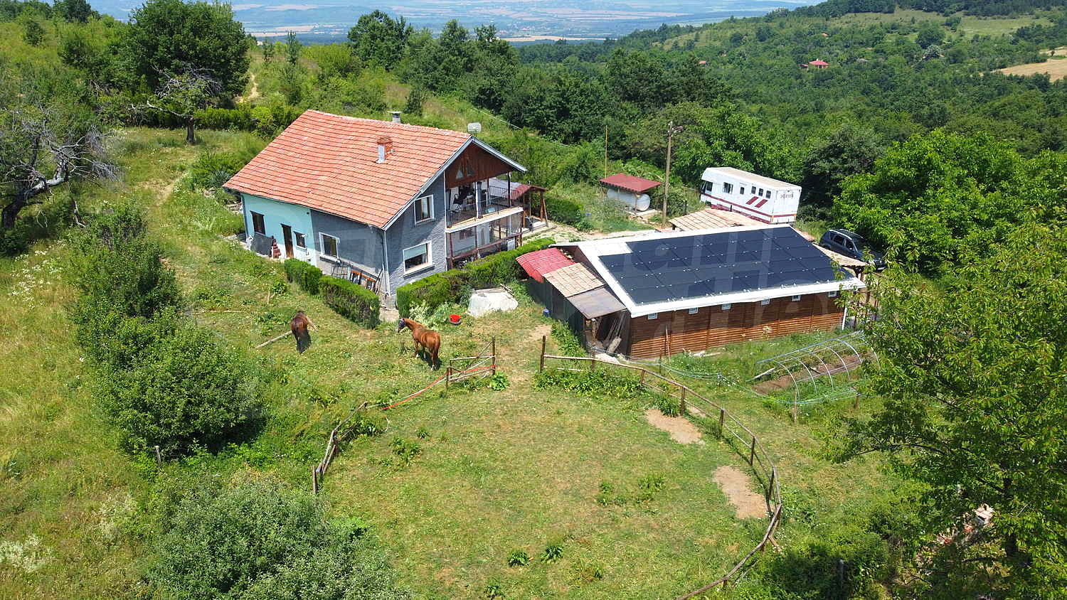 Къща с уединена локация, голям двор и конюшня в полите на планината