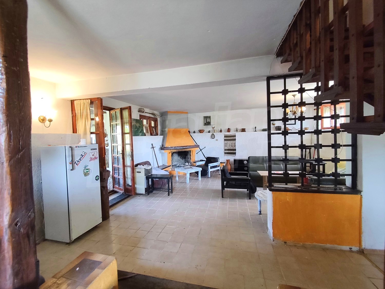 Къщата разполага с четирите уютни спални и успешно съчетава традиционни български мотиви с модерен прочит на комфорта. Изградена преди около 20 години, тя впечатлява с използването на естествени материали – камък, дърво, масивни детайли – и създава уют с ръчно изработена камина, разположена в просторен хол с отворено разпределение към кухнята и трапезарията. От хола се излиза към покрит навес от 30 м² с изградени барбекю, пещ и бар-плот – идеално място за събирания с приятели или семейството.
