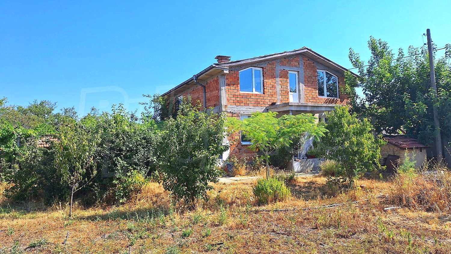 Конструкцията на къщата е здрава и стабилна, изпълнена със стоманобетон и тухла, което гарантира дълготрайност и сигурност. Отоплението е решено с електрически уреди и печка на дърва.