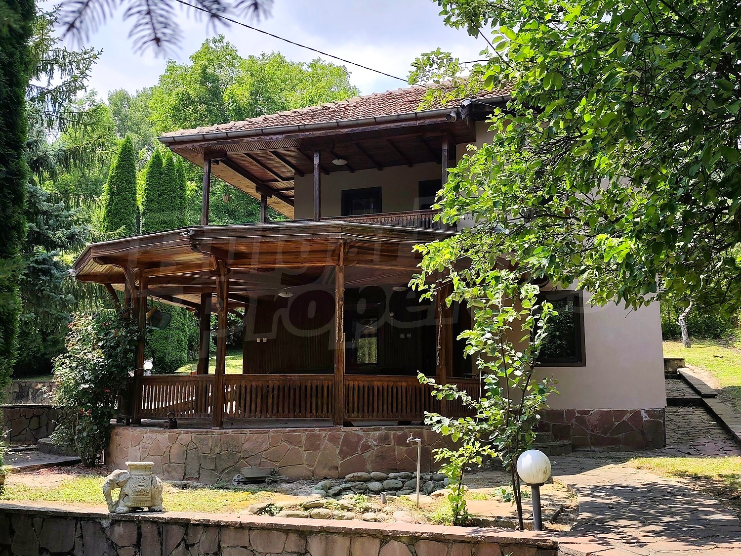 Имотът се характеризира с уединена локация и е ограден с тухлен дувар в добро състояние. Дворът на имота е облагороден с декоративни дръвчета, терасирани дувари и плочник, облицовани с красив червен пясъчник.